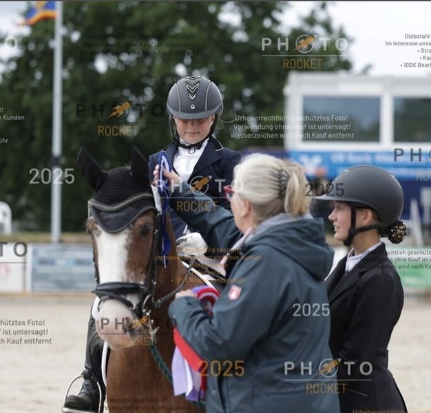 Hallo, wenn alles passt muss ich mich schweren Herzens von meinem 14 Jährigen Tinker Wallach Disney trennen. Ich habe einfach das Gefühl das ich ihm nicht mehr gerecht werden kann und er es wo anders noch besser haben könne. Wo er mehr Aufmerksamkeit und auch mehr Arbeit bekommt. Nun einmal zu ihm, Disney ist 1,40m Groß und vom Charakter her eine Treue Seele, wenn er weiß das er geschätzt, respektiert und Geliebt wird. Wenn er nicht die auslastung kriegt die er brauch dann zeigt er das eindeutig. Er macht nicht so etwas wie treten oder durch die Zäune rennen, sondern leichtes knapsen, einfach irgendwo hin rennen und man merkt ihm einfach an das er schlecht gelaunt ist. Ich habe ihn jetzt 3 Jahre, er kommt aus der Pferdeklappe. Er wurde dort abgegeben weil er in See nähe muss wegen seinem Equienem Asthma. Wir wohnen ca. 6km von der Nordsee entfernt und hatten noch nie Probleme. Ich bin mit ihm viel auf Ringreiten unterwegs gewesen, dort zeigte er sich wie erwartet sehr brav. 2024 bin ich das erste Tunier mit ihm geritten (wir hatten beide so gut wie keine Erfahrung) und konnte direkt in einem Jump and Run den 2. Platz belegen. Auf Tunieren bin ich eher im Springen unterwegs gewesen von 40cm bis 80cm. In einem Springwettbewerb 75cm konnten wir mit einer 7,7 6. Platz werden. Aber auch in der Dressur zeigt er sich stets bemüht. Er hat 3 Schöne GGA wo man auf jedenfall bisschen noch was raus holen könnte. Auf dem Geländeplatz zeigt er sich auch artig und konzentriert bei der Sache. Er geht dort durch das Wasser und macht alles mit was geht. Mit Kindern ab 2 Jahren hat er auch Wöchentlich zu tun da ich meinen Geschwistern ab und an mal Unterricht gebe. Ob in der Halle oder Draußen auf dem Platz, er passt immer auf und ist Vorsichtig. Auch mit Kindern die es nicht leicht haben, merkt er dies und ist ein ganz artiges Pony. Ausreiten ist mit ihm leider eine kleine Sache, er schießt gerne mal los egal ob in der Gruppe oder alleine. Dies ist mir zu gefährlich geworden nachdem ich es letzte Woche noch einmal Ausprobiert habe. Er versucht immer wieder umzudrehen oder rennt in irgendeinen Weg rein. Wenn er geführt wird ist er im Gelände das aller liebste Pony. Er kennt Offenstall sowie Box mit Täglichem Weidegang. Wir haben ihm jedoch von Offenstall in Box mit Täglichem Weidegang umgestellt da er über Nacht nicht wirklich zur Ruhe kam und dann bei der Arbeit schlecht gelaunt und müde war. Ich wünsche mir das beste zuhause für ihn und hoffe das es jemanden gibt der ihn genau so eine chance gibt wie ich es getan habe. Platz vor Preis! Wenn fragen aufgekommen sind beantworte ich diese gerne.