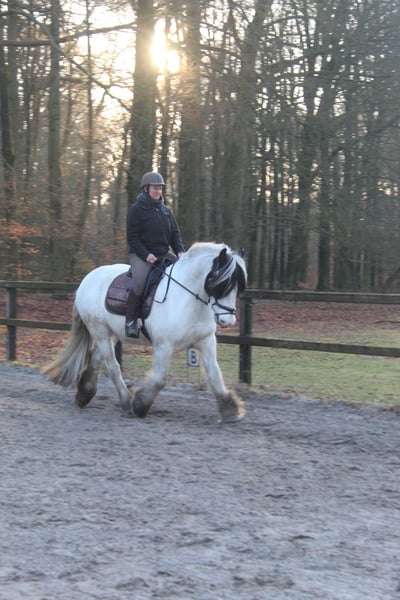 TE KOOP: grote sportieve tinker, zeer mooie verschijning! Gaat weg wegens tijdgebrek. Vriendelijk en betrouwbaar karakter, maar niet geschikt voor de onzekere ruiter. Geschikt voor de ruiter met ambities in de dressuur, maar ook geschikt voor de recreatieve ruiter. - ruin; - 14 jaar; - stokmaat 1,60 mtr; - zeer mooi van bouw; - soepel in zijn lijf; - zeer bereidwillig; - in het verleden oefeningen uit de M gereden (dressuur), niet uitgebracht op wedstrijden - betrouwbaar op buitenritten zowel in groep als zelfstandig; - geen stalgebreken; - verkeers en trailermak; - altijd geeënt en ontwormt; - staat geregistreerd in het Nederlandse stamboek tinkers; - liefst staat hij 24/7 buiten; Handelaren en maneges hoeven niet te reageren, goed huis is erg belangrijk. Filmmateriaal op verzoek.