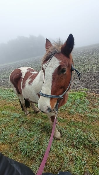 Unser hübscher Tinkermix-Wallach Bobby (Braunschecke, 15 Jahre alt, 1,60 m groß) sucht ein neues Zuhause bei Menschen, die ihm mit Einfühlungsvermögen und Vertrauen begegnen. Bobby habe ich intensiv vom Boden aus gearbeitet, viel Freiarbeit gemacht und bin regelmäßig mit ihm als Handpferd ins Gelände gegangen. Bobby arbeitet sehr motiviert, freudig und lernwillig. Er ist topfit, sehr sozial und verträgt sich sowohl mit Stuten als auch mit Wallachen. In kleinen wie großen Herden fühlt er sich wohl. 2023 wurde bei ihm Equines Asthma diagnostiziert. Durch angepasste Haltung (Offenstall, Heulage) ist er seitdem komplett symptomfrei. Regelmäßige Versorgung (Impfungen, Zähne, Entwurmung, Hufe) ist selbstverständlich erfolgt. Sämtliches Equipment kann mit ihm mitziehen. Optional besteht auch die Möglichkeit, seinen aktuellen Stallplatz zu übernehmen. Platz vor Preis – wir wünschen uns für Bobby nur das beste Zuhause. Bei ernsthaftem Interesse freuen wir uns über eine Nachricht.