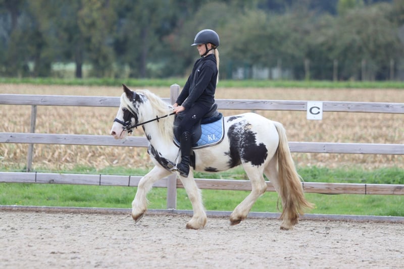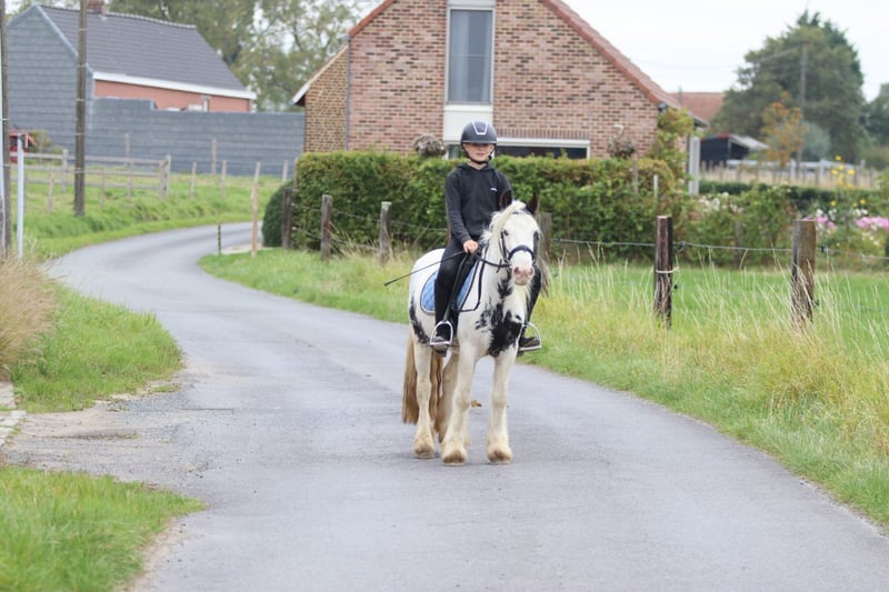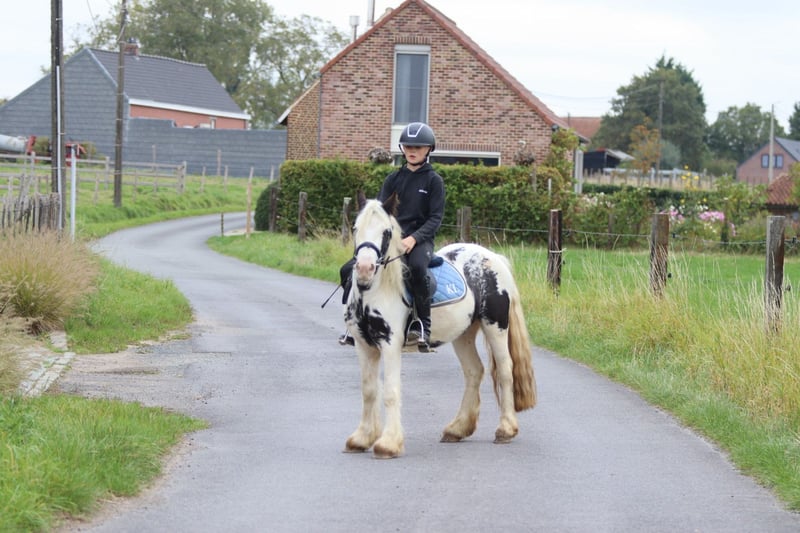 ✨ Tinker pony Cobra ✨ Cobra is a beautiful 4-year-old Tinker gelding standing at 1.26m. He has a very sweet character and immediately stands out with his lovely markings and that special blue eye. 🩵 In handling, he is super calm and cuddly, a real sweetheart who loves attention. Under saddle, he is very well-behaved and easy to ride. He takes small jumps and also enjoys going out on trail rides. 🌿🐎 Cobra is a nice all-round pony who, with his gentle character and cheerful demeanor, steals everyone’s heart! 💫 More info? +32475682243 For videos, feel free to ask for our website.