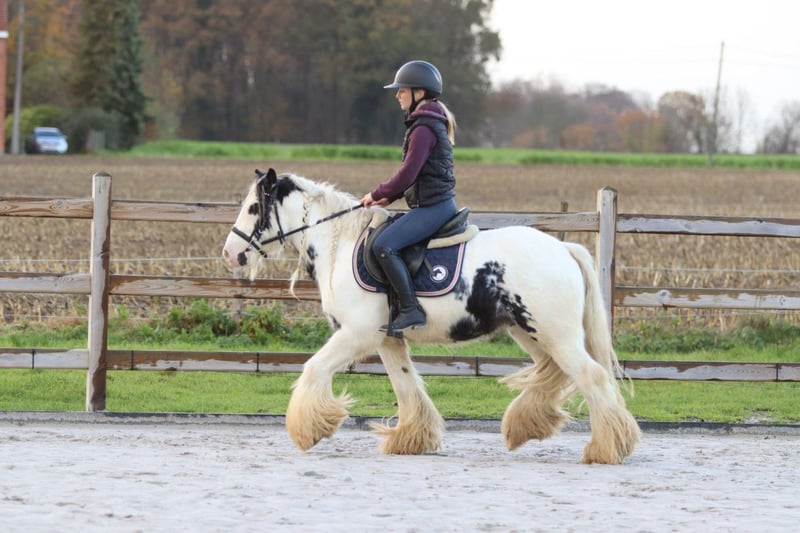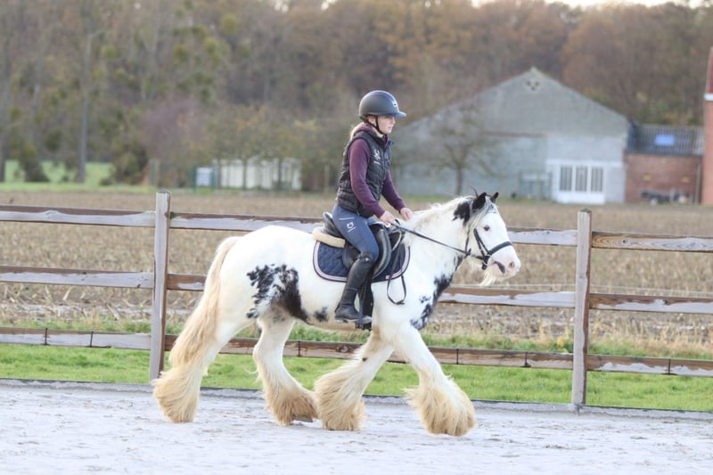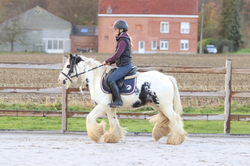 Marcus – Top Brave Tinker Pony Marcus ist ein wunderschöner vierjähriger Tinker-Hengst (1,32 m) mit hübschen Abzeichen, vollen Socken und einem superlieben Gesicht. Er kommt gut mit anderen Ponys zurecht und besitzt ein äußerst freundliches Wesen. Beim Putzen bleibt Marcus stets ruhig stehen: Bürsten, Mähne flechten, Waschen – alles kein Problem für ihn. Im Reitplatz ist er unkompliziert und angenehm zu reiten. Er hält ein ruhiges, gleichmäßiges Tempo im Trab und wechselt ohne Eile elegant in den Galopp. Auch Sprünge meistert er problemlos. Außerdem genießt er genauso sehr eine entspannte Ausfahrt im Gelände. Marcus ist zudem absolut zuverlässig (siehe Fotos und Videos mit dem Ball) und brav im Transport. Ein ideales Pony für einen Freizeitreiter. 📞 Weitere Infos: 0032 475 68 22 43 🎥 Videos auf unserer Webseite erhältlich (gerne eine Nachricht schicken)