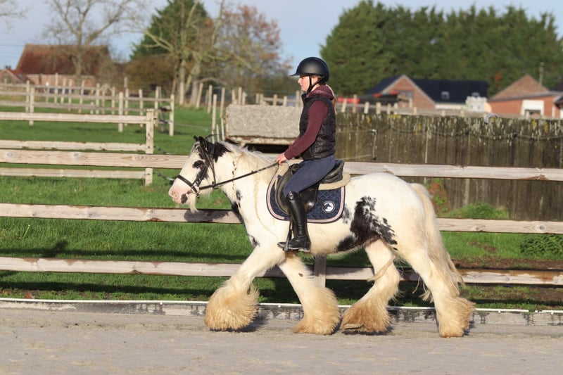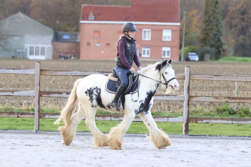 Marcus – Tinker Pony de Grande Valeur et Très Brave Marcus est un magnifique poney Tinker de 4 ans (1,32 m) avec de jolies marques, des jambes pleines de poils et un adorable visage. Il s’entend très bien avec les autres poneys et possède un caractère extrêmement doux. Lors du pansage, Marcus reste toujours calme : il se tient parfaitement debout pour le brossage, la mise en crinière, le lavage… il trouve cela tout à fait normal. En selle, il est facile et agréable à monter. Il maintient un rythme calme et stable au pas, et passe proprement au trot sans se précipiter. Il saute également sans aucun problème. De plus, il apprécie autant une promenade décontractée en extérieur. Marcus est en outre très sûr de lui (voir photos et vidéos avec le ballon) et est parfaitement calme en transport. Un poney idéal pour un cavalier de loisir. 📞 Plus d’informations : 0032 475 68 22 43 🎥 Vidéos disponibles sur notre site internet (n’hésitez pas à nous envoyer un message)