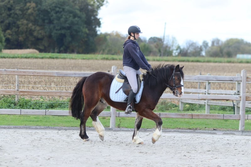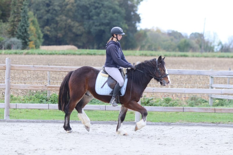 🤎 Joe 🤎 Gave Tinker pony, 4 years old – cob type, 1.42 m tall. Joe is truly a charming pony with a sweet, expressive head and a beautiful, strong build 🤍 🐎 Riding: – Knows the three gaits well and is well-behaved under saddle – Handles outdoor rides both alone and in groups without any issues – Calm and friendly with other ponies 👩🦰 Thanks to his size, Joe is also ideal for adult riders (the rider in the photos is 1.73 m). 📞 More info: 0032 475 68 22 43 📹 For videos: ask for our website