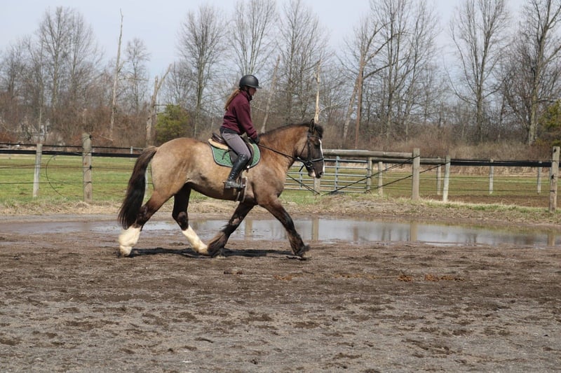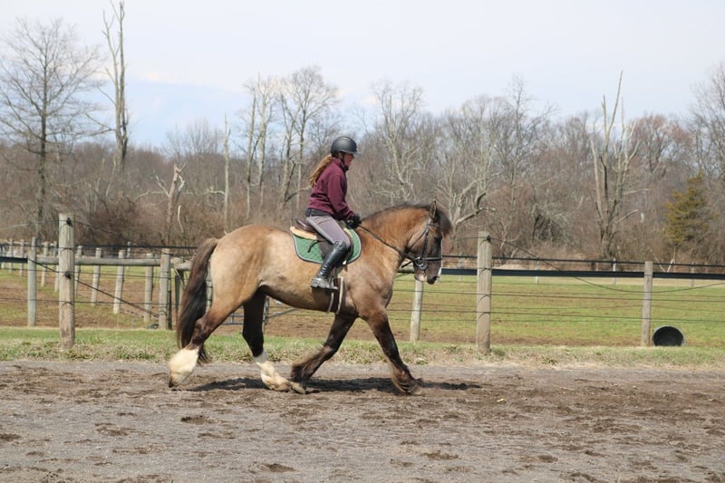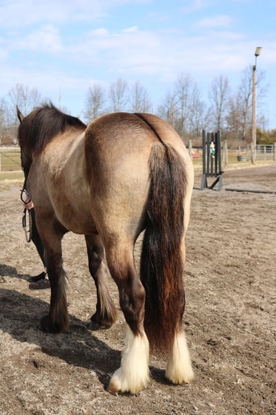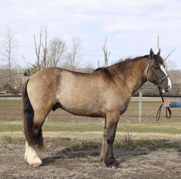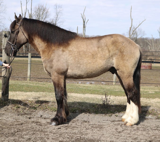 🌟𝑨𝒑𝒓𝒊𝒍 𝐀𝐋𝐋 𝐒𝐓𝐀𝐑 𝐋𝐈𝐍𝐄𝐔𝐏🌟 Happening now thru MONDAY | APRIL 6th - Available EXCLUSIVELY on HorseBid's website! For more details and to register visit: www.Horsebid.com CONSIGNOR CONTACT: Heather Ritz 610-247-5671 LOCATION: Perkasie PA BREED: Gypsy Vanner x Shire REGISTERED: No COLOR: Grulla HEIGHT: 15.3 AGE: 4 GENDER: Gelding Recon 4 YO Grulla Gypsy Vanner x Shire Gelding. Recon stands at 15.3 with a stocky build. He is sound with no known injuries or maintenance and up to date on everything. He doesn’t crib, bite, kick, or weave. In the barn, Recon has a sweet cuddly personality. He stands quietly to be tacked, bathed, clipped, and for the vet/farrier. He is easy to handle with a great personality. In the arena, Recon is broke to ride both english and western. He stands to be mounted from the ground or by a block. He is walk trot canters and picks up both leads. Recon is smooth and comfortable undersaddle. He is started over fences and is honest to the jumps. Recon also has desensitization training and is experienced with tarps, flags, balls, and dragging buckets/logs. On the trails, Recon is solid and reliable. He is sure footed and will cross any terrain. Recon rides out alone or in a group. He is used to traffic, water, bridges, and dogs/cows. He has even by ridden on the side of a major highway with no spook! Recon is safe enough for a husband but is also athletic enough for dressage, foxhunting, and lower level eventing. No buck, rear, spook, or bolt.