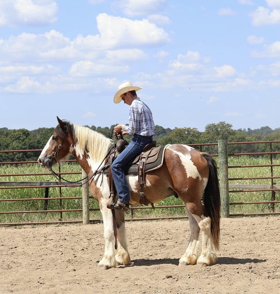 ⚜️ 𝓽𝓱𝓮 𝐇𝐨𝐫𝐬𝐞𝐦𝐚𝐧'𝐬 𝓢𝓱𝓸𝔀𝓬𝓪𝓼𝓮⚜️ Happening now thru MONDAY | DECEMBER 1st - Available EXCLUSIVELY on HorseBid's website! For more details and to register visit: www.Horsebid.com CONSIGNOR CONTACT: Jamie Thomason 270-772-1706 LOCATION: Auburn, KY BREED: Gypsy Drum REGISTERED: No COLOR: Bay Paint HEIGHT: 15.3 AGE: 3 GENDER: Gelding Add a little color to your barn with this one of a kind gelding who brings quiet confidence to every ride! He’s personable and gentle, with that laidback, husband safe attitude everyone wants, but rarely finds. On the trail he’s calm, steady, and sure of himself, whether you’re out for a quick loop or heading off on an overnight camping trip. Safe for guests and dependable enough to help with ranch chores, he’s a trustworthy partner with the feel of an old soul. Clayton is a 3 yr old, bay paint, Gypsy Drum gelding, currently standing 15.3 hands, & he’s ready for his next best friend! Clayton has spent this past summer with us logging miles of trails, working on a cattle operation, and serving as the “go to” When my teenagers organize a weekend camping trip with their non horsey friends. He’s the one we load up every time when we need a steady mount for someone who doesn’t have a horse to ride. Clayton has been trusted to come along on numerous trails across various states. He ties on a line over night, is always quiet, and provides the same safe experience every time. Clayton crosses water, goes up and down inclines, navigates rough terrain & downfall with ease. A more whoa than go style. Clayton is an asset on the farm. We use him to gather cattle alongside working stock dogs, to rope & doctor calves. There’s nothing he isn’t willing to try, a true working partner. Clayton is young, but wise beyond his years. He is gun safe, traffic safe, carries the flag, and is unbothered by the tarp. We’ve rode up on various wildlife including deer & turkey and he just carried on. His daily life includes working alongside ATV/UTV’s, large farm equipment, and other livestock, I’m convinced there’s nothing he hasn’t seen. Whether you’re searching for a safe and steady trail horse, a dependable ranch partner, or simply an enjoyable ride right at home, Clayton is your guy. He’s the kind you can count on every time you swing a leg over. If you would like to meet Clayton or have any other questions prior to adding him to your family, feel free to reach out! PPE’s welcome! We can assist in arranging shipping to anywhere! Contact Jamie @ 270-772-1706 Located in Auburn, KY
