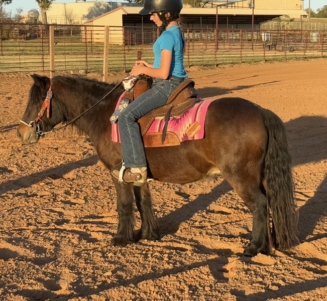 🎁 𝐈𝐍 𝐓𝐈𝐌𝐄 𝐅𝐎𝐑 𝑪𝒉𝒓𝒊𝒔𝒕𝒎𝒂𝒔 🎁 Happening now thru TUESDAY | DECEMBER 9th - Available EXCLUSIVELY on Ponybid's website! For more details and to register visit: www.Ponybid.com CONSIGNOR CONTACT: JP Performance Horses 817-901-6596 LOCATION: Weatherford, Texas BREED: Mini Gypsy Cross REGISTERED: No REGISTERED NAME: Finn COLOR: Bay HEIGHT: 42 inches AGE: 4 GENDER: Gelding Meet Finn – The Perfect Mini Gypsy Cross Pony 🌟 There isn’t a pony any cuter than Finn! This sweet mini Gypsy cross stands 42 inches and is as wide as he is tall—built perfectly for little riders. He’s just 4 years old, but his calm, sensible personality makes him act much older than his age. Finn is a gentle, puppy-dog type who loves kids and thrives on attention and brushing. He rides and drives, and being raised in the Amish community, he’s been exposed to all kinds of sights and sounds around the farm. He’s unflappable and loves adventures—whether it’s trail riding, walking through town, or splashing in the water. Nothing spooks him! He has excellent feet, stands for the farrier, loads and unloads easily, and comes with a current Coggins. Finn doesn’t have a mean bone in his body—he’s the kind of pony that wins the hearts of everyone he meets. With his little doll head, feathered feet, and beautiful body, Finn is every child’s dream pony. He will fit perfectly under the Christmas tree, and we will gladly hold him until Christmas. Shipping can also be arranged. Finn is truly special and ready to bring joy and love to his next lucky family. Feel free to reach out to Jackie with JP Performance Horses at 817-901-6596 visit, schedule a visit or FaceTime call.