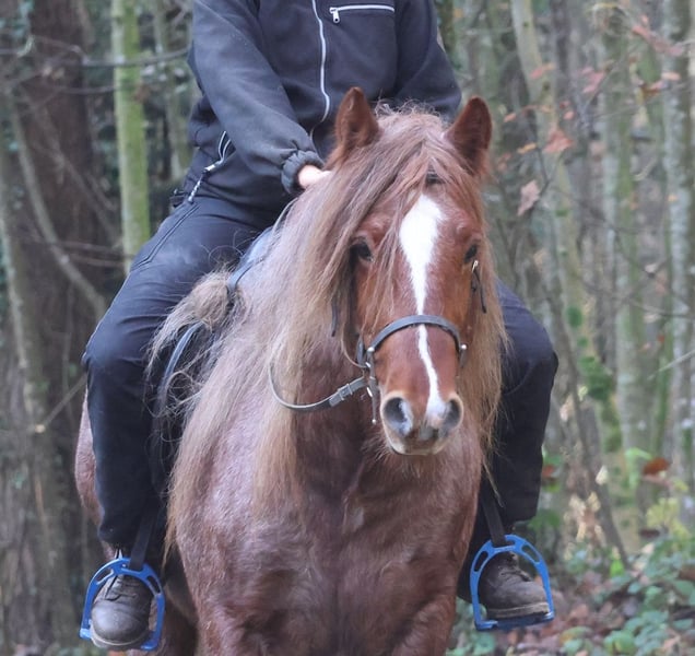 JJ ist ein lieber, eher gemütlicher Wallach, Stm. ca. 144 cm, 4,5-jährig Er wird bei uns regelmässig im Gelände Geritten.