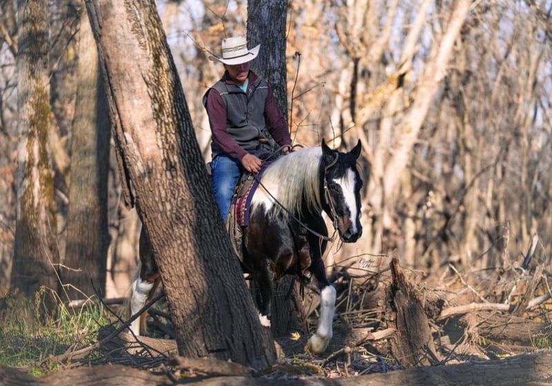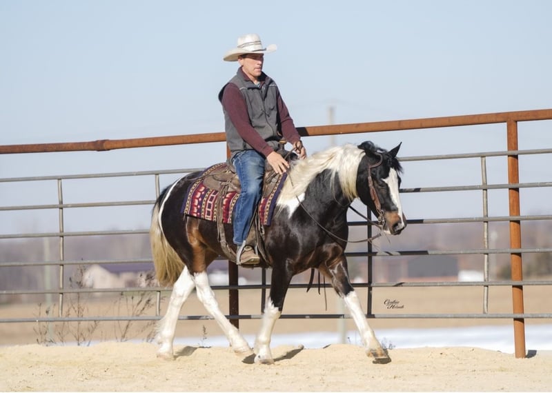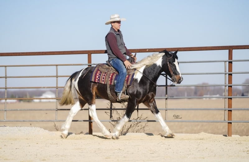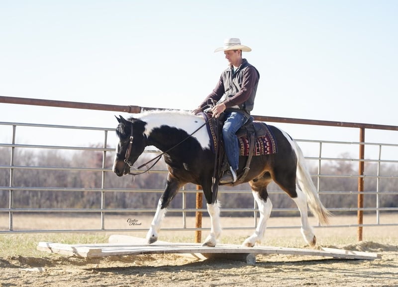 ⚜️ 𝓽𝓱𝓮 𝐇𝐨𝐫𝐬𝐞𝐦𝐚𝐧'𝐬 𝓢𝓱𝓸𝔀𝓬𝓪𝓼𝓮⚜️ Happening now thru MONDAY | DECEMBER 1st - Available EXCLUSIVELY on HorseBid's website! For more details and to register visit: www.Horsebid.com CONSIGNOR CONTACT: Diamond J Equine Services 319-415-9460 LOCATION: Fairbank IA BREED: Gypsy cross REGISTERED: No COLOR: Black and white HEIGHT: 14-2 AGE: 4 GENDER: Gelding Seis is a 4 year old Gypsy/Percheron+Morgan cross gelding. He is broke to ride and drive, single and double. He stands 14.3 hands high and is the perfect size for both adults and children. He has been ridden extensively in the arena and has lots of outside miles on the trail as well. He walks, trots, and lopes a nice circle, and is pretty to watch. He goes through the trails with ease crossing bridges, going through water, and over logs without any problems. He will ride out alone or with other horses. Seis drives just as nice as he rides! He has been driven a lot in a team, and does well by himself as well. He matches very well in a team with his 7/8ths brother, Cinco, who is also available. Please contact Jonas at 319-415-9460 with any questions! Thank you!