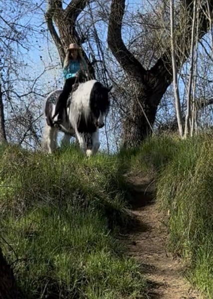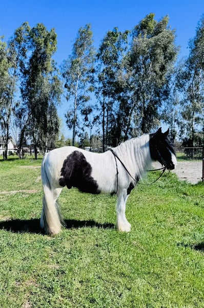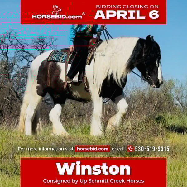 🌟𝑨𝒑𝒓𝒊𝒍 𝐀𝐋𝐋 𝐒𝐓𝐀𝐑 𝐋𝐈𝐍𝐄𝐔𝐏🌟 Happening now thru MONDAY | APRIL 6th - Available EXCLUSIVELY on HorseBid's website! For more details and to register visit: www.Horsebid.com CONSIGNOR CONTACT: Up Schmitt Creek Horses 530-519-9315 LOCATION: Gerber, CA BREED: Gypsy Vanner REGISTERED: No COLOR: Blue Roan and White HEIGHT: 15.1 AGE: 5 GENDER: Gelding THE WHOLE FAMILY CAN ENJOY HIM! He is big, stout and strong, he’s a versatile partner — whether in the show ring, enjoying dressage and western equitation, or simply being someone’s beloved daily riding horse and trail companion. He is NOT spooky, point him he will go down the road by cars, train track, city trails, or go push in the cattle, been in the branding pen. has roped a few and drag them to the fire. he has been started carting, and over little jumps. He has such amazing mind and so welling. Straight legs, solid feet, excellent proportions, exceptionally heavy mane, tail, and feather. He has the best personality, he will met you at the gate, loves attention, saddle up and step on he has absolutely zero bad habits. NO BUCK. rides bareback take him swimming he loves the water. rides out by himself or with a group he is suitable for any level of rider. watch his video and you will see why we all LOVE him. UTD on everything. I will credit $1000 towards hauling and keep him for 5days for free and $10 a day after