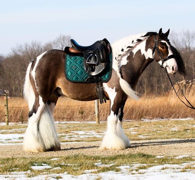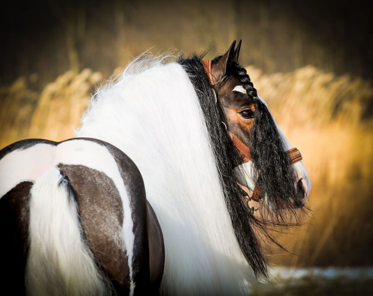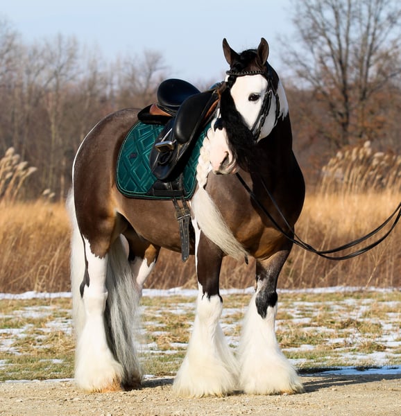 Wiley, 6-letni kasztanowy ogier Tobiano Gypsy Vanner o wzroście 13,2 hh
