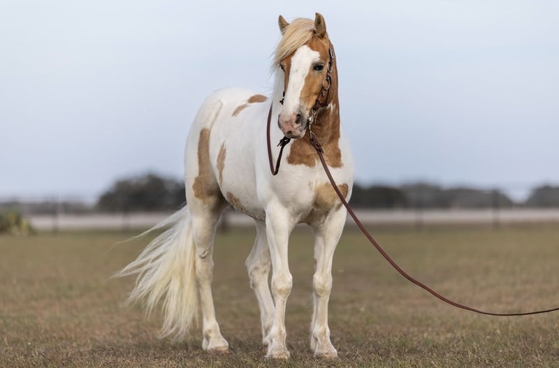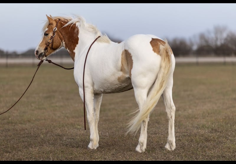 "AVAILABLE ON ONLINE HORSE AUCTION AT www DOT PlatinumEquineAuction DOT com BIDDING OPEN NOW thru SUNDAY | MARCH 15TH! *Final price will be determined on auction site* CONSIGNOR CONTACT INFO: Cheyenne Hirsch 281-202-5377 LOCATION: Victoria, TX Meet the kind of horse that makes people stop mid-sentence when he walks by. With the unmistakable look of a Gypsy Vanner wrapped into a handy 14-hand package, this 6-year-old pony cross has the feather, presence, and soft expression that feel straight out of a storybook — but with the versatility to be a fun, practical partner in the real world. He has a good start and is ready to be finished out, giving someone the opportunity to take him in the direction they choose. He has been ridden Western, but his movement and natural balance really suggest he could excel in an English program for someone wanting a unique and eye-catching mount. Temperament-wise, he’s a thoughtful horse who takes in his surroundings. He isn’t the pushy, in-your-pocket type and tends to be more independent in the pasture rather than the first one at the gate — but under saddle he’s willing and tries to do his job. He has been out on the trails and does well when he has a confident rider giving him direction. He’s also been exposed to the atmosphere of team ropings, quietly helping push cattle up the alley, and has handled that environment with a level head. Because he’s still gaining experience, he’s best suited for a handy youth or adult who appreciates a kind, sensitive horse and enjoys developing a partnership, rather than a total beginner or small child. He’s the type that offers a rewarding ride for someone who enjoys bringing one along — eye-catching enough to stand out anywhere, but with a kind mind that wants to get along with his person. If you’re searching for something unique, versatile, and full of potential — a horse you can truly make your own — he’s ready for his next chapter.