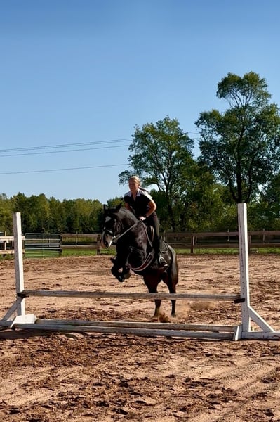 ⚜️ 𝓽𝓱𝓮 𝐇𝐨𝐫𝐬𝐞𝐦𝐚𝐧'𝐬 𝓢𝓱𝓸𝔀𝓬𝓪𝓼𝓮⚜️ Happening now thru MONDAY | DECEMBER 1st - Available EXCLUSIVELY on HorseBid's website! For more details and to register visit: www.Horsebid.com CONSIGNOR CONTACT: AJ Acres 920-251-5127 LOCATION: Pickett, WI BREED: Gypsy Cross REGISTERED: No REGISTERED NAME: AJA Black Shadowy Knight COLOR: Bay HEIGHT: 14.1 AGE: 5 GENDER: Gelding Shadow rides and drives; he is a horse that excels at whichever task you give him and aims to please. He is lovingly adored by his youth and adult riders, and enjoys attention from all humans. Shadow dominates in the show ring with his eye-catching movement. He has been successfully shown by youth and adults in hand, western, English, saddleseat, over cross rails, and speed events - placing competitively in each discipline! Not only does he prove himself with his show performance, Shadow has the sound and sane mind to take you safely down the trails. He has been hauled all over to multiple state parks, racked on tons of trail miles, crosses water and bridges, follows or leads. He’s used to dogs running around him during schooling and is not bothered by traffic. He has been stalled for weekend shows and stands well for bathing/banding/grooming. He has been ridden in our local 4th of July parade and loved all the attention! He’ll pick you up at the mounting block, greet you at the gate, and be happy to clock in to work for the day. Shadow knows voice commands (driving) and is attentive to leg, hand, and seat commands under saddle. He has beautiful gaits, knows his leads, pivots nicely, and has a great stop. He would excel in dressage, but could go any direction his next partner wants to go and will put forth the effort to do it successfully. Shadow truly is a special horse who will make someone a fantastic partner. We’re going to be sad to see this one go! Ties, loads, hauls, bathes, clips, etc. UTD all cares (chiro, worm, teeth, feet, vacc). Front shoes for show season. Will have current health certificate/PPE. Located Pickett, Wi. Hauling available.