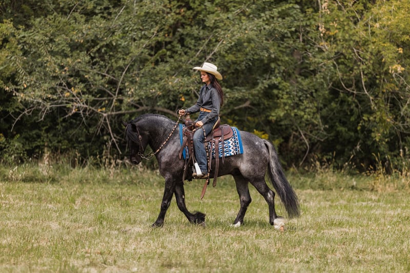 🍁𝒕𝒉𝒆 𝐅𝐀𝐋𝐋 𝑺𝒑𝒆𝒄𝒕𝒂𝒄𝒖𝒍𝒂𝒓🍁 Happening now thru MONDAY | SEPTEMBER 22nd - Available EXCLUSIVELY on HorseBid's website! For more details and to register visit: www.Horsebid.com CONSIGNOR CONTACT: Helmuth Equine 515-460-9191 LOCATION: Ames, IA BREED: Gypsy X Welsh REGISTERED: No COLOR: Blue Roan HEIGHT: 14.1 AGE: 5 GENDER: Gelding Azul is a 5 year old blue roan gelding who stands at 14.1 hh. He is a Gypsy X Welsh. Azul is very versatile and could go in any direction. He rides very well western, lopes circles on a loose rein, works nicely in an arena, and can also be collected up and ridden English, including dressage. He will safely carry anyone from a little kid to a grandma on a trail ride, and you can count on him being 100% safe. Azul also drives extremely well and is soft in the bridle. He would make an excellent pleasure driving horse or combined driving horse. He is quiet and safe enough for a complete beginner to drive, yet fancy enough to move up through the combined driving levels. He has been to town many times and is completely traffic safe. He drives both in a pair and single. He is a true sweetheart with the absolute best manners in and around the barn. Azul stands nicely to mount and to hitch up, and he walks off perfectly. He has excellent conformation with zero vices and does not require any special maintenance. If you’ve had a lifelong dream of owning a blue roan gentleman, Azul will be that and so much more!