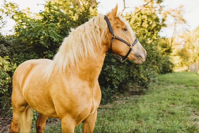 ONLINE AUCTION Place your bids at www.PlatinumEquineAuction.com Starting Bid $3500 Auction ends September 29th, 2024 Need a new saddle? Check out White Rock Saddles on our website or Facebook! Blackstones Golden Boy, or Sargent as we call him around the farm is the kind of horse that turns heads wherever he goes. This stunning 4-year-old, 16.2hh champagne colored American Cream Gypsy Vanner cross gelding is not just a remarkable sight. He shines like pure gold in the sun and has a gorgeous blonde mane and tail. he is a powerhouse of strength, versatility, and athleticism. For a horse of his size, Sargent moves with incredible grace and fluidity, making him not only a reliable mount but also an athlete in his own right. Whether you are riding Western, English, or bareback, Sargent delivers an exceptional experience, seamlessly transitioning between disciplines with ease. What truly makes Sargent stand out is his “been there, done that” attitude. He is the definition of a bombproof horse—absolutely safe in any environment. Sargent has been ridden on state roads, in the woods, open fields, and has even gone on a shopping trip to our local farm store! His beautiful golden color blonde mane and tail and flowing feathers capture everyone’s attention! One glance into his big hazel eyes will steal your heart. Out on the trails, Sargents calm, and steady nature shines. Water crossings, tarps, bridges and other common obstacles do not phase him in the slightest. His even temperament makes him an ideal horse for beginners who need a forgiving partner, while his experience and smooth gaits make him just as enjoyable for advanced riders. Sargent is the rare horse that adapts to his rider’s needs, making him a perfect fit for anyone from novice to seasoned equestrians. And speaking of smoothness, Sargents three gaits are simply unbeatable. His walk, trot, and canter are incredibly fluid and comfortable, making him perfect for all-day rides without leaving you sore. Whether you are working in the arena or exploring the trails, Sargents athleticism and stamina ensure he will keep going strong, mile after mile. In short, Sargent is the full package: strikingly beautiful, strong, athletic, and most importantly, safe. If you are looking for a versatile horse that excels in both riding and driving, Sargent is the perfect partner. He is ready to take on anything, whether you are a beginner looking for safety or an experienced rider seeking a smooth, dependable horse for long adventures. Sargent lives in Howell, MI 48855. Please call or text Ellesse Schwartz at 248-390-6831 for more information. ONLINE AUCTION Place your bids at www.PlatinumEquineAuction.com Starting Bid $3500 Auction ends September 29th, 2024 Need a new saddle? Check out White Rock Saddles on our website or Facebook!