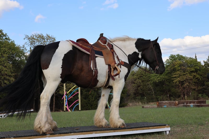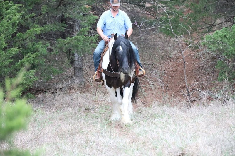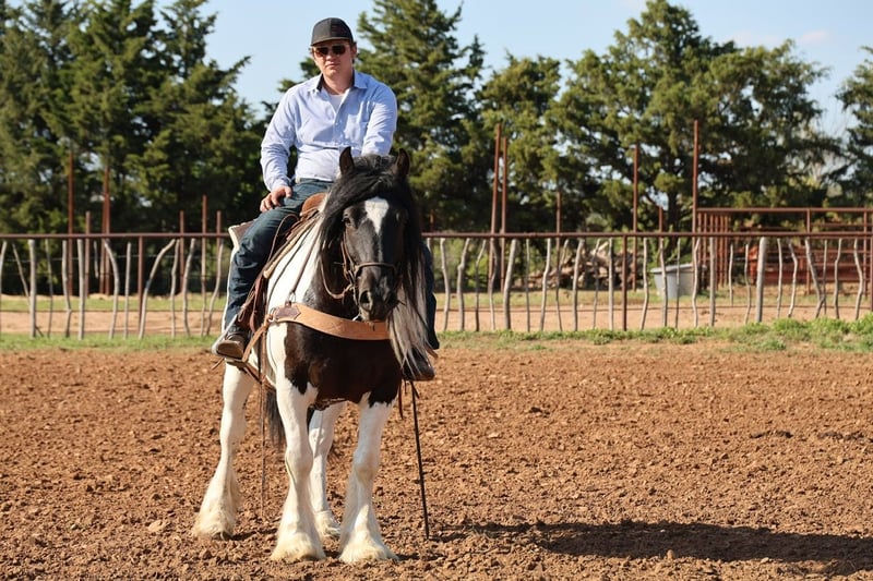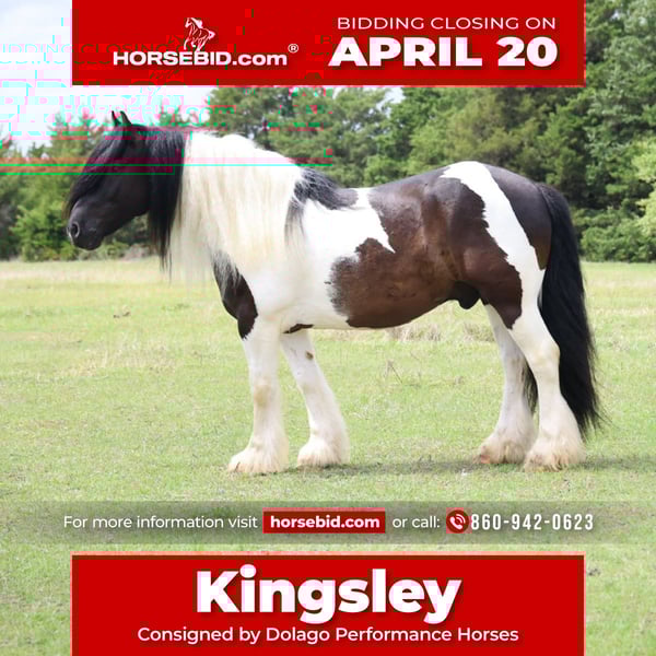 ⚜️𝐭𝐡𝐞 𝓔𝓵𝓲𝓽𝓮 𝐒𝐩𝐫𝐢𝐧𝐠 𝐂𝐥𝐚𝐬𝐬𝐢𝐜⚜️ Happening now thru MONDAY | APRIL 20th - Available EXCLUSIVELY on HorseBid's website! For more details and to register visit: www.Horsebid.com CONSIGNOR CONTACT: Dolago Performance Horses 860-942-0623 LOCATION: Ripley, OK BREED: Gypsy Vanner REGISTERED: No REGISTERED NAME: Kingsley COLOR: Gypsy HEIGHT: 15 AGE: 7 GENDER: Gelding I feel like he dosnt need an introduction but here it is…Kingsley is the definition of a true family horse and the kind that’s getting harder and harder to find. He has spent his entire life being loved on, handled, and ridden by all levels of riders, making him as honest, safe, and gentle as they come. He’s the type you can trust with the kids, pull out after time off, and know exactly what you’re going to get every single ride. He’s just as impressive to look at as he is to ride. With that classic Gypsy Vanner build big bone, a strong hip, a deep body, and a thick neck, he has the kind of conformation that turns heads everywhere he goes. He is 15.1 hands tall weighing 1300 lbs. He’s good looking and he knows it, he carries himself with presence and pride, paired with all the feather, hair, and eye appeal you could want. I mean that hair is out of this world! He’s built right, balanced, and made to last! His personality is truly what sets him apart. He has that “in your pocket” type of demeanor, always wanting attention and happy to meet you at the gate. Kind, patient, and willing, he aims to please and is the same horse every single day. There’s no funny business just a steady, dependable partner you can enjoy no matter what! He has lived in the north most his life being a solid true dependable family horse. That entitles being trail rode by all family members all day many many days of his life, being used in the fields to gather, doctor cows, and anything you can imagine little kids put one through! But don’t let his quiet, gentle nature fool you he’s more than capable when it’s time to go to work. Whether it’s a full day out on the trails, checking cattle, or just covering miles, he stays steady, willing, and comfortable the whole way. He has a smooth, easy way of going and a great mind that keeps him consistent no matter the situation. You’ll enjoy this horse himself and his ride no matter what your doing that day! With his standout looks, great conformation, and unbeatable personality, he’s the complete package for someone looking for a safe, dependable, and enjoyable horse that’s to die for! Horses like him don’t come around often, don’t miss your chance to own your very own unicorn!