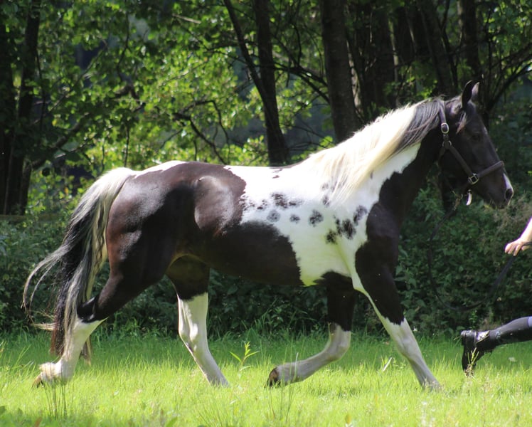 **Sales Advertisement: Tinker-Mix Gelding** For sale is a beautiful Tinker-Mix gelding from 2019. With his striking piebald coat and a height of 155 cm, he is truly a sight to behold! This charming gelding is excellent for leisure activities and impresses with his calm and friendly nature. He is well-mannered and easy to handle. He has been gently started under saddle with us and is now ready to embark on the next journey with his new owner. We envision Artax in recreational riding, but he will also look great in the arena. We can imagine that he would enjoy groundwork as well; he is just a wonderful big baby :-). Artax is kept in a mixed herd with us and is very well socialized, getting along well with both large and small mares as well as geldings. He is familiar with stable life from before, but has been kept in a robust open stable with us for a long time. He has a solid basic training and shows great motivation in his work. If you are looking for a loyal companion for unforgettable rides and relaxing hours in nature, then this Tinker-Mix gelding is just the right one for you! Artax will only be sold into the best hands. This is not an urgent sale. We have restructured our riding operation and accordingly, we are reducing our horse inventory. We can envision Artax in a well-managed riding or school operation as well as in private ownership. He will definitely not be sold to dealers. If you are interested or have any further questions, please feel free to contact us. Viewings and trial rides are possible by arrangement.