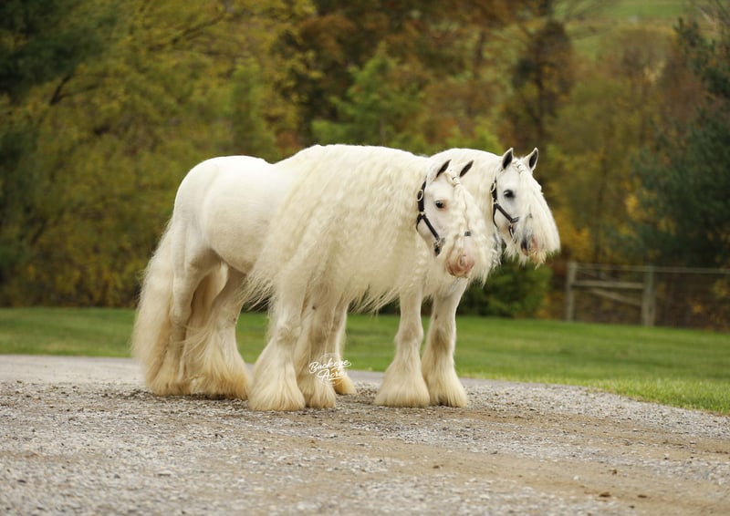 If fairytale horses were real, Vanilla & Cream would be standing right in front of you. This breathtaking pair of Irish Cob geldings is truly one of a kind, blending eye-catching beauty with real-world experience and exceptional versatility. Snow white with long, flowing, fluffy manes and tails, they are guaranteed to stop traffic and steal hearts wherever they go. These 2018 model geldings are standout individuals who also shine as a matched pair. Vanilla stands 12.3 hands tall and Cream is 13 hands, making them an almost perfect match in size and presence. They ride western, English, and bareback, they drive, side pass with ease, and are even being ridden Roman riding, highlighting their balance, trust, and incredible minds. Whether in the arena, on the trail, or heading through town, Vanilla & Cream step up confidently and stay consistent. They have been in town, on busy state roads, and through heavy stop-and-go traffic without missing a beat. Parades, pony parades, crowds, noise, and excitement are all just another day at the office for these two. We proudly had them at our local parade, where they handled everything like seasoned professionals and were a crowd favorite. Vanilla & Cream are imported from Ireland, adding to their rarity and value. They are safe for any level of rider or driver and have a true want-to-be-your-friend kind of attitude. In the barn, wash bay, and with the farrier, they are easy, respectful, and pleasant to handle, and they are often the first ones to meet you at the gate. Out on the trail, they are relaxed, steady, and enjoyable, always happy to head out and see what is next. Both geldings are honest, dependable, and truly enjoy having a job. They are up to date on all vaccinations, deworming, and farrier care, making them ready to step right into their next home. If you are looking for something that no one else has, not even your neighbor, we honestly believe Vanilla & Cream could be it. A rare, show-stopping pair like this does not come along often. For more information, please feel free to reach out to Duane at 330-231-2324 or to schedule a day to stop by and see them. We would love to welcome you out and give you a ride.