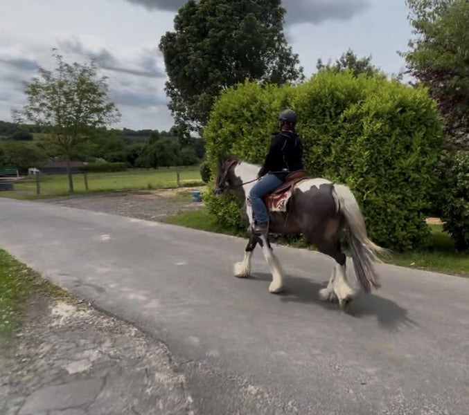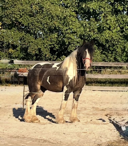 Ferry zoekt een nieuwe plek waar hij zich thuis kan voelen Hij is 8 jaar oud, ongeveer 1,55 m groot, een prachtige zwart-wit-bruin gevlekte Tinker met een uitstekende afstamming en een grote persoonlijkheid. Nu gaat hij op zoek naar een nieuwe familie waar hij echt kan aankomen. Ferry kent de klassieke dubbele longe, de traditionele handwerktraining, de grondwerktraining en het longeerwerk met rijden. Ook het rijden met de longe is hem bekend. Hij heeft ook rusttraining gehad, die hij betrouwbaar heeft doorstaan. In het terrein is Ferry regelmatig onderweg, zowel alleen als met andere paarden. Ook in het verkeer waren we met hem onderweg, en dat doet hij geweldig: of het nu auto's, fietsen, tractoren zijn, van voren of van achteren, Ferry blijft kalm en braaf. Onder het zadel wordt hij momenteel verder opgeleid. Hij loopt stap, draf en galop en laat al mooie beginstukken zien van schouderbinnen, travers en binnen- en buitenwaarts rijden. Zoals het hoort bij een stevige Tinker en pony, kan Ferry soms ook eigenwijs zijn. Daarom zoeken wij voor hem een even eigenwijze, duidelijke persoon die weet wat ze wil en hem liefdevol, maar consequent de structuur biedt die hij nodig heeft om de trouwe en lieve partner te worden die je als paardenmens wenst. Zijn wereld is duidelijk het terrein, dat vindt hij het allerleukst. Buiten is Ferry een kleine motocross-offroad-machine die gewoon plezier brengt: overal overheen, overal doorheen, zolang en zover de hoeven het toelaten. Dat is zijn motto. Natuurlijk is Ferry smid- en trailerproef, hij is gezond geregistreerd, sociaal betrouwbaar en gewend aan kinderen en honden. Ferry is een echte vriend, een buitenpaard, een type met hart en karakter. We zoeken voor hem een familie die hem accepteert zoals hij is en ervaring heeft met paarden.
