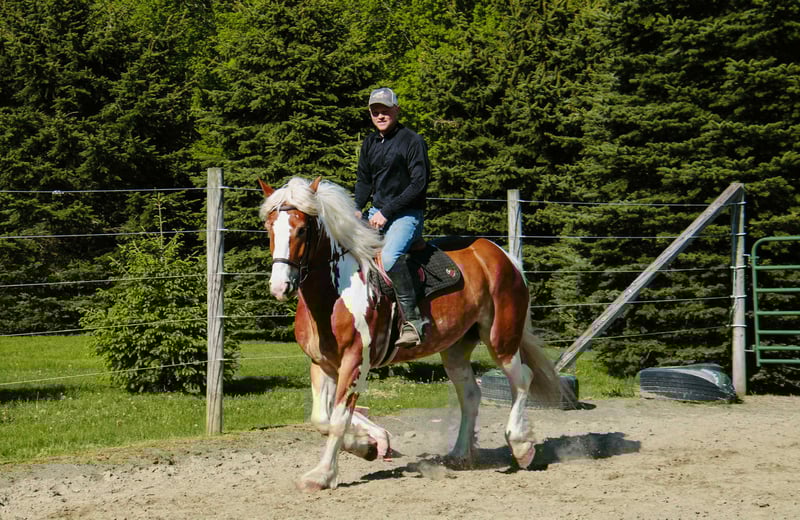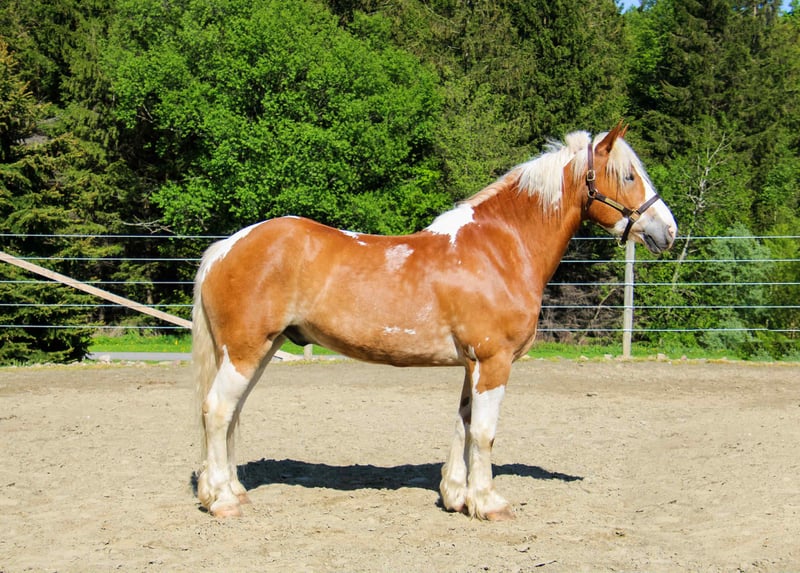 ONLINE AUCTION Place your bids at www.PlatinumEquineAuction.com Starting Bid $3500 Auction ends July 6 2025 Need a new saddle? Check out White Rock Saddles on our website or Facebook! Meet Ranger a Belgian Gypsy Cross gelding, with his eye-catching appearance and strong build, he’s the kind of horse that grabs everyone’s attention no matter where he goes. Ranger is 7 years old, standing 16hh tall and 1400lb. He is a dependable partner both on the trail and in the arena. He’s sure-footed and confident on the trail, whether riding solo or in a group. Ranger will cross ditches, ravines, and anything he encounters on the trail. We have ridden him on the busy roads and he is not bothered by any traffic! Ranger will walk, trot, and canter on the correct lead in the arena. We have put Ranger through our rigorous obstacle course, and he passed with flying colors! Ranger has also been used for our lessons with the older kids, and he is easy for them to ride! Ranger will stand patiently for the vet, farrier, and clipping! Ranger sells 100% sound with no vices. We think Ranger would be best suited for an intermediate rider! PPE are welcome at the buyer’s expense! We are located in Warsaw, NY. Contact Dayton Wolcott for more information on Ranger at 585-734-0169. ONLINE AUCTION Place your bids at www.PlatinumEquineAuction.com Starting Bid $3500 Auction ends July 6 2025 Need a new saddle? Check out White Rock Saddles on our website or Facebook!