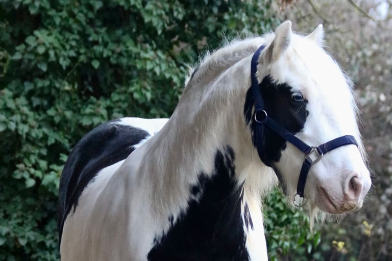 Splash, the sweetest temptation since ponies were invented. Or simply: practical, reliable, and charming. Splash is an 8-year-old, proud 14.0 hh gelding of a strikingly beautiful Gypsy Vanner breed, featuring an unusually elegant coat color, excellent conformation, and straight legs. He has been gently backed and is now in basic training. He is extremely calm, relaxed, and remains unfazed by almost anything. Whether it’s umbrellas, tarps, trumpets, or other objects, nothing startles this little fellow. Splash is already familiar with groundwork, leading, classical riding, classical double longeing, driving double longeing, and road safety training. He consistently shows attentiveness and good manners. He is also accustomed to dogs and cats. His training level is more than appropriate for a young horse of his age. He loves trail riding, whether alone or in company, and always strives to please his rider in the terrain. The boy is well-mannered and impresses with his lovable, loyal, and dependable character. Splash is completely social and used to herd life and open stable management. Naturally, he is farrier- and loading-friendly, and his health records are meticulously maintained. Thanks to his balanced temperament and composure, I can also see Splash excelling in therapeutic riding with further training. He is only available to responsible, caring owners with sufficient experience in handling young horses.