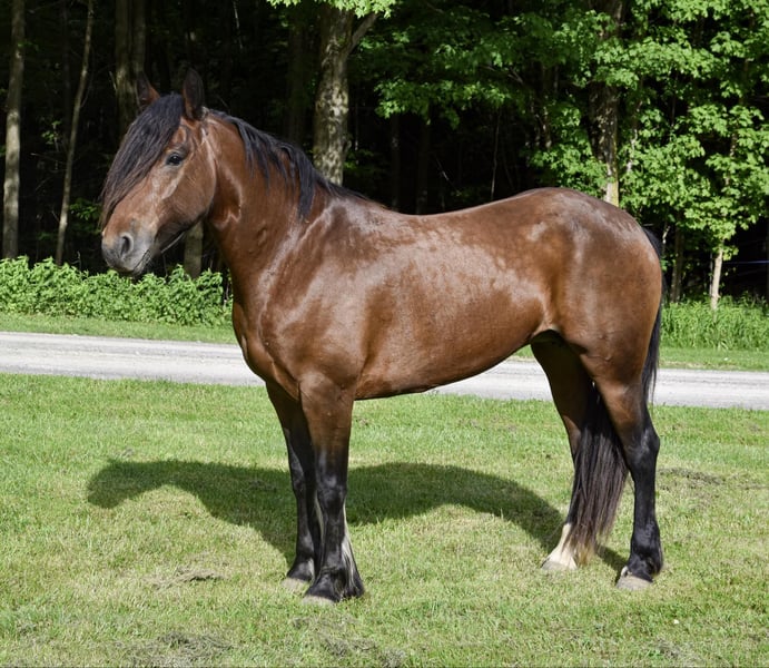 ONLINE AUCTION Place your bids at www.PlatinumEquineAuction.com Starting Bid $3500 Auction ends June 23rd, 2024 Need a new saddle? Check out White Rock Saddles on our website or Facebook! Who doesn’t love a pretty bay with a long mane and feathering? Mercedes is a stout 7-year-old Gypsy/Friesian cross mare standing at 14.2hh and is as pretty as one can be. Mercedes has a strong and steady walk that allows her to keep up with larger horses, and she is comfortable around other farm animals and traffic. Tarps, bridges, and water, don’t bother her, making her a versatile and reliable partner on the trail. Mercedes has ponied other horses, both on the trail and in the arena. While she can walk, trot, and canter in the arena, her true talent shines when she is out on the trail or working on the ranch. Mercedes sells 100% sound with no vices! Contact Dayton at 585-734-0169 for more information! Located in Warsaw, NY. ONLINE AUCTION Place your bids at www.PlatinumEquineAuction.com Starting Bid $3500 Auction ends June 23rd, 2024 Need a new saddle? Check out White Rock Saddles on our website or Facebook!