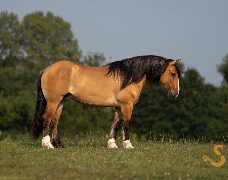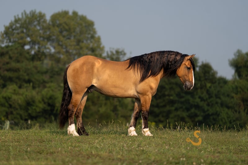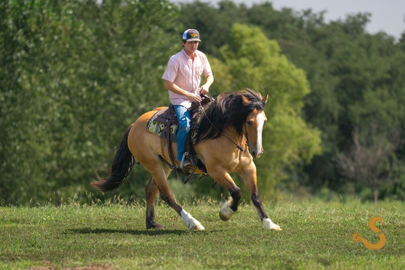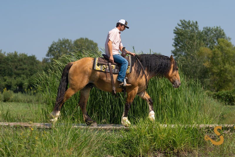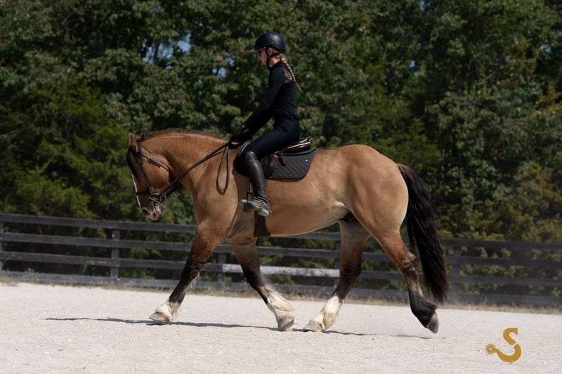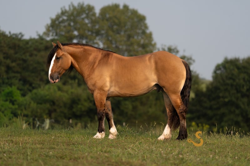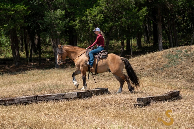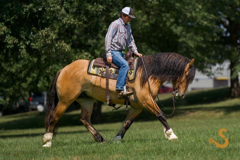 🍁𝒕𝒉𝒆 𝐅𝐀𝐋𝐋 𝑺𝒑𝒆𝒄𝒕𝒂𝒄𝒖𝒍𝒂𝒓🍁 Happening now thru MONDAY | SEPTEMBER 22nd - Available EXCLUSIVELY on HorseBid's website! For more details and to register visit: www.Horsebid.com CONSIGNOR CONTACT: Broken S Equine Kieran 908-645-2127 or Beau 573-303-4087 LOCATION: Bogard, MO BREED: Gypsy Vanner x Quarter Horse x Percheron REGISTERED: No COLOR: Dun HEIGHT: 15.3 AGE: 8 GENDER: Gelding Simba is an 8 year old 1/2 Gypsy Vanner 1/4 Quarter Horse 1/4 Percheron gelding standing 15.3 hands high. Simba has beauty, brains, and a kind personality that makes everyone fall in love! It's hard to pin point the best part about this horse, because he really checks every box. He's a dream in the arena, steady on the trails, and a perfect gentleman in the barn. He is the perfect mix of athletic ability, and slow and steady. Simba is exactly the type of versatile, family friendly, horse that we aim to offer. No matter what discipline you ride, or your experience level, you will enjoy and love this horse. He can go from jumping Novice questions on the xc field, to sliding stops and loping circles like a reining horse. Let the kids climb on him and braid his hair, then saddle him up and take your husband on a trail ride. He is a true all-in-one, safe and fun for the entire family, tried and true partner. In the ring, Simba is broke the very best. He has had extensive training and has the ride ability to be successful in any arena. He is schooling first level dressage tests, and has gone to working equitation clinics. He has great lateral work, pivots, neck reins, and has a great sliding stop. His gaits are smooth and comfortable, with fantastic transitions. He is happy riding on a loose rein, or being round in the bridle. The professional will enjoy him as much as a beginner will. He is tolerant, safe, and steady for the novice rider or kids - yet still has all the moves and education needed to succeed and impress with the experienced riders. You will never find yourself bored in the saddle! On the trails and off property, Simba is sure footed and reliable. He will trail ride alone or in a group, and will happily cross water, ditches, steep hills, and bravely covers any terrain. He is used to loading in the trailer to go new places for trail rides, camping trips, clinics, and schooling. On the cross country field, Simba is a superstar! There was not a single question that fazed him. He is adjustable, brave, and easy! He would be a phenomenal choice for the hunt field as well. He is quiet minded, smart with his feet, and already used to the fences, varying terrain, and environment. In the barn, Simba is a kind and gentle soul. He is used to the kids being around him, braiding him, and loving on him. He's a very good boy for all of the usual barn tasks, and stands like a gentleman for bathing, grooming, the farrier, and vet. He is easy to load on the trailer, stand tied to and on the trailer, and is overall an easy guy to be around. He is happy living inside or out, and gets along with mares and geldings in turnout. Simba is a horse to gain your confidence with, a horse to relax after a long day with, and a horse you can try new things with. ⚫️Simba is an easy keeper that requires no maintenance. We have a recent, clean vet check on file. ⚫️Our program aims to train and produce top quality horses and ponies for all disciplines and experience levels. ⚫️We are located in Bogard, MO. We can help you arrange shipping anywhere! ⚫️For more information about Simba, or any of our other horses call or text us. Kieran 908-645-2127 Beau 573-303-4087