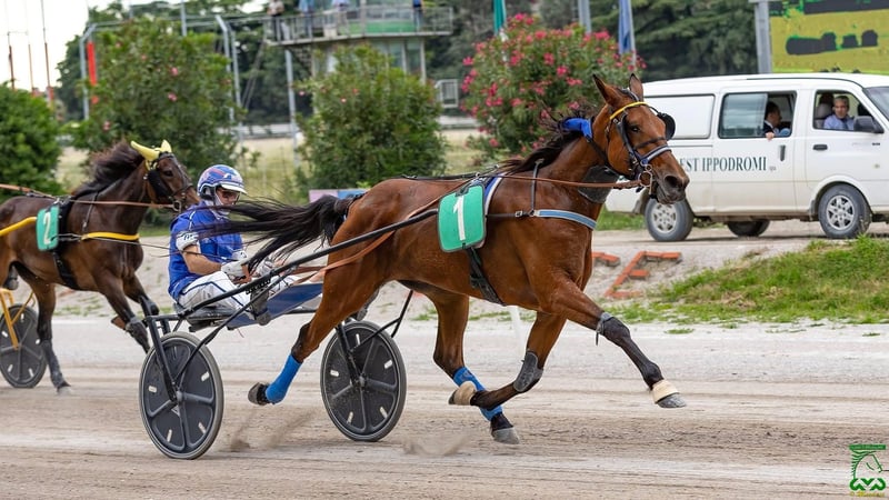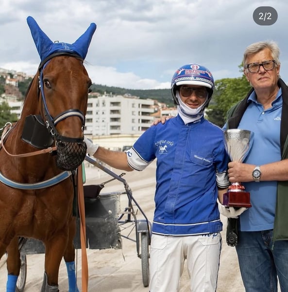 ESTALBA PAX Eine wunderschöne 6-jährige Trotter-Stute. Tochter von IGLESIAS & OMARA QUIN. Schätzungshöhe ca. 1,60 m. Eine Stute mit außergewöhnlichem Charakter. Sie läuft monatlich und hat keinerlei Probleme. Wir suchen eine neue verantwortungsbewusste Person, die sich um sie kümmert, da sich unsere Lebenssituation geändert hat. Sie befindet sich im Training und kann im Hippodrom von Cesena besichtigt werden. In ihrer Karriere hat sie fast 30.000 € gewonnen. Rekord auf der Bahn bei 1600 m: 1:13,6 Rekord auf der Bahn bei 2000 m: 1:16,7 Sie ist sowohl an den Sattel als auch am Sulky gewöhnt und ist wirklich sehr brav. Keine Zeitverschwendung. Keine Händler oder Geschäftemacher. Für weitere Informationen: +39 391 7059140