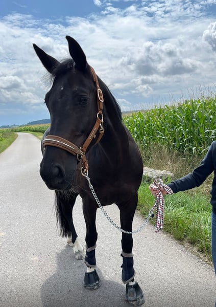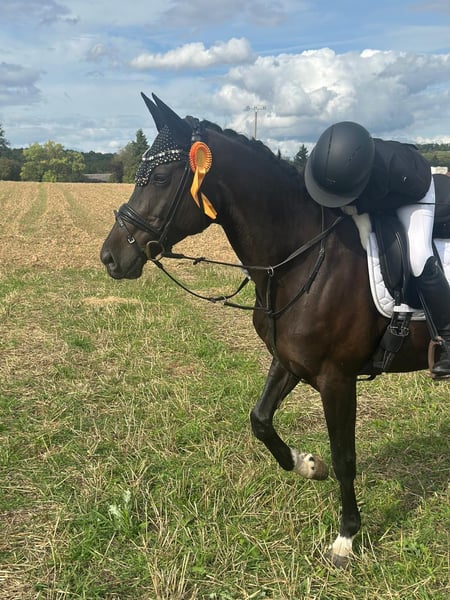 Unsere 12jährige " Balance" ist eine Traumstute in jeder Hinsicht. Sie macht im Umgang und beim reiten Ihrem Namen alle Ehre. Steht ruhig beim putzen, satteln, waschen und Schmied. Sie ist von jedermann zu bedienen. Balance ist verträgliche mit anderen Pferden. Sie steht bei uns mit unserem Wallach auch zusammen auf der Koppel. Bei der täglichen Dressurarbeit ist sie sehr sitzbequem, spult erlerntes jederzeit gut ab und ist motiviert an Neuem zu arbeiten. Sie geht mit und ohne Ausbinder (auch an der Longe). Auch mit schwächernen Reitern, verzeiht Sie großzügig Fehler und möchte Ihrem Reiter immer alles recht machen. Auf dem Turnier ist Sie mit unserer Tochter sehr erfolgreich in Ihrer Klasse gewesen, und ist platziert bis E Dressur. Ein absolut tolle Pferd für Anfänger und Turniereinsteiger. Ein weiterer schätzenswerter Bonus ist Ihre absolute Zuverlässigkeit im Gelände. Sie geht sowohl alleine als auch in der Gruppe brav vom Hof, zeigt sich im Gelände unerschrocken und stets gelassen. Wir wünschen uns für Balance in 5* zu Hause mit Koppel und viel kuscheln. Videos auf Anfrage. Zubehör: Sattel und Trense können mit erworben werden. Rufen sie uns gern an wenn sie Fragen haben oder " Bella " kennenlernen möchten https://www.rimondo.com/de/horse-details/2385113/pm-balance