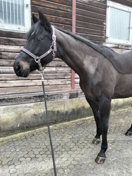 Lillango This twelve-year-old mare is available for sale. She impresses with her friendly nature and gentle demeanor. She is consistently well-behaved in handling, with a comfortable seat for riding, and is easy to groom and ride even for children. She is familiar with both solo and group rides in various terrains, although she can be a bit more cautious, she remains mentally clear and manageable at all times. Cars, tractors, trains, pedestrians, cyclists, strollers, and much more do not disturb her in the slightest. She particularly enjoys jumping, where she gets excited, recognizes distances well, and assists her rider effectively. Due to her clinically diagnosed arthrosis in the neck, which has been treated, she is not suitable for sport but is looking for a loving leisure rider who will care for her attentively. X-ray images of her neck are available. Alternatively, she could also be considered as a broodmare. Price negotiable, space before price. CHF 5,000. For inquiries, please contact via private message, phone, or WhatsApp at +41 76 722 99 80.