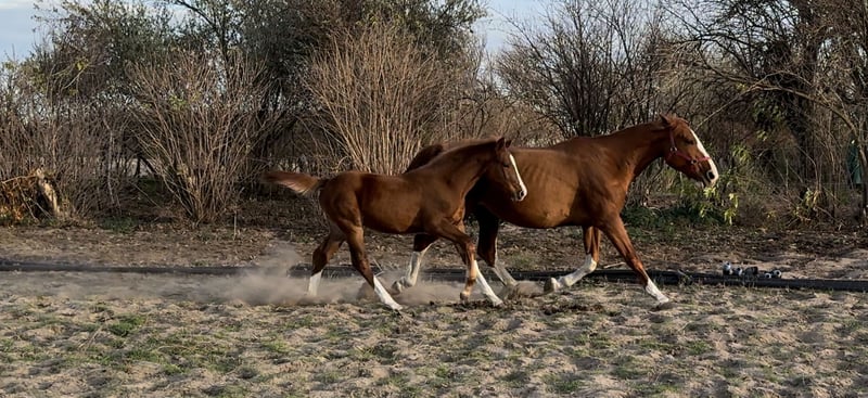 Mazikeen IN ist eine Tokyo IC * Zordon * Jupiter Stute geboren am 16.06.2025. Sie kann ab Mitte Dezember abgegeben werden (wäre das perfekte Weihnachtsgeschenk 😉). Eine Besichtigung ist nach vorheriger Terminvereinbarung möglich und sie kann bis Dezember mehrfach besucht werden, vom zukünftigen Besitzer. Sie ist eine sehr ruhige, intelligente Fohlenstute. Natürlich lässt sie sich anbinden, führen, beim Hufschmied ruhig stehen und hat das vollständige Trimmen des Körpers ohne Probleme geduldet. Sie springt mit Freude alles, was ihr auf der Weide oder im Paddock begegnet. Bei der HSH Fohlenmeisterschaft erhielt sie eine Prämienbewertung. Weitere Fotos (sie hat einen eigenen Ordner auf meiner Seite): https://www.facebook.com/share/17JuTZPeLh/ Gerne sende ich Ihnen auch weitere Bilder und Videos per Nachricht. Gegen Aufpreis ist ein Transport zu ihrem neuen Besitzer möglich.