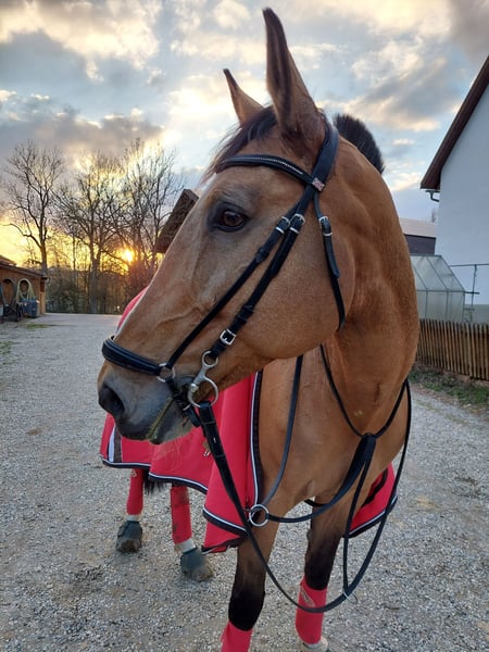 Hallo Zusammen, ich fange jetzt nicht wie üblich an. Schweren Herzens... Ja es ist hart den Schritt jetzt zu gehen, aber ich kann ihr nicht das bieten was für sie gut ist. Moulin Rouge, genannt Muli ist eine 21 jährige ungarische Sportstute. Sie hat einen Stockmaß von 170cm. Sie ist kein Tüddelpony. Und gehört noch lange nicht zum alten Eisen Sie brauch klare Strukturen, da sie nicht einfach ist. Beim Reiten ist Muli übereifrig und möchte auch arbeiten. Man muss Reiten können. Sie steht mit einer weiteren Stute auf der Weide mit mehr Pferden habe ich es nicht ausprobiert. Gerne tagsüber draußen, wünsche mir eine kleine Gruppe für sie, aber in der Nacht möchte sie ihre Box. Muli hat eine Stauballergie, aber mit dem richtigen Management kein Problem. Momentan ist sie mit Duplos beklebt, aber bei richtiger Bearbeitung, wo wir gerade dran sind, kann sie sicher auch barhuf laufen Muli habe ich seit 11 Jahren, seitdem ist sie in keinen Hänger mehr fahren. Wer sich für sie interessiert, soll sich bewusst sein, das sie ein Pferd mit Charakter und Macken ist, sie Brauch Routine. War regelmäßig Zahnarzt und Osteo vorgestellt. Ich verkaufe mit dem nötigstens Zubehör, Sattel kann für 600€ mit gekauft werden. Über den Rest kann man reden. Das Geld ist mir nicht wichtig. Wichtig ist mir ein guter Platz. Wenn du Interesse hast, schreib mir bitte einen kurzen Steckbrief. Ich nehme fürs anschauen 25€ einfach damit es kein, ich schau aus Spaß mal wird. Es ist kein Notverkauf Viele Grüße