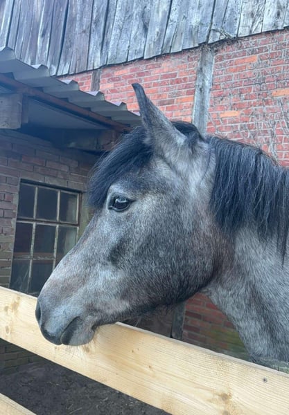 For sale is a 5-year-old Hungarian pony mare. Miranda is approximately 147 cm tall and accommodates larger riders well with her strong build. She confidently moves in all three gaits, is familiar with lunging and trail rides. Miranda is a very relaxed and uncomplicated type and is hardly disturbed. Occasionally, she shows her mare-like behavior while grooming (tail lifting), which is why we would not sell her as a purely beginner pony. When ridden, she shows no bad habits. With us, she has been ridden by three different people, so we can also imagine her in a school setting. Children have already sat on her without any issues. She behaves very well in the field. She is very comfortable in the trot and can be easily placed on the bit. In the gallop, the connection still needs to be further developed. In free jumping, she shows a good jump. Due to time constraints, she has not been further trained in jumping so far. However, we believe that with proper training, she would excel in show jumping. Loading onto a trailer and farrier visits are no problem. Miranda has been regularly dewormed. If you are interested, we would be happy to arrange an appointment for you to get to know Miranda. We charge a fee of €15 for a trial ride, which will, of course, be credited towards the purchase. Equipment can be included for an additional cost.