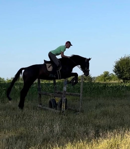 Elegant Hungarian Sport Horse mare, born in 2021, offering exceptional potential for the ambitious rider. Standing at a impressive 178 cm, this well-built mare boasts a refined brown coat and a noble presence. She has been carefully trained in jumping, demonstrating natural talent and a good technique over fences. Her balanced conformation and athletic build make her suitable for a variety of equestrian disciplines, with a particular focus on show jumping. Well-ridden and responsive, she exhibits a willing attitude and a promising future in the sport. An excellent choice for riders seeking a talented and versatile mare with a strong pedigree and a bright competitive outlook.