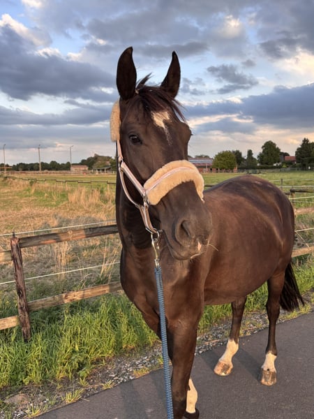 Schönes Springpferd zu verkaufen, aufgrund einer Verletzung aktuell nur bedingt reitbar. Ich könnte sie mir auch gut als Zuchtstute vorstellen aufgrund der tollen Abstammung.