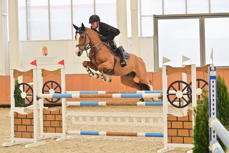 Our charming, elegant and impressive mare is looking for her new rider. She is easy to handle, always cooperative in her work, professionally trained by an outstanding dressage rider and is currently actively competing. This young and poromising mara was placed in the inddor final for 6-year-old horses in Hungary. Reliable and brave, she has the potential to be a freat partner for higher-level courses as well. At present, she is succesfully competing on courses appropriate for her age with a young lady rider. Her father is Cicero IC, whose bloodlines include legends such as: Cero - 160 cm Quite Capitol - 150 cm Cantus - 160 cm Quidam de Revel 160 cm https://www.youtube.com/watch?v=z_Mrc_QVeCc WhatsAPP: +36709462611