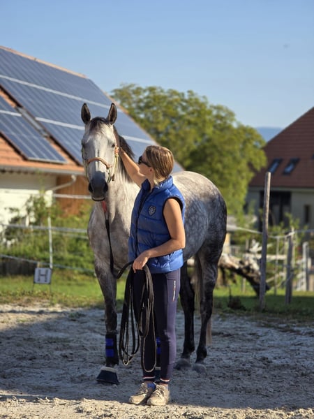 Sage, talentierte Stute aus ungarischer Zucht zu verkaufen NUR IN ERFAHRENE HÄNDE ABZUGEBEN À vendre, une jument prometteuse d’élevage hongrois, qui aura huit ans en 2026. Elle se distingue par son tempérament équilibré et son caractère agréable. Elle est très calme, proche de l’homme et facile à gérer, que ce soit lors du pansage, du longe ou dans le quotidien du box. Elle reste toujours posée et coopérative, tout en appréciant la compagnie de ses compagnons équins. La jument a été vermifugée, immunisée contre le tétanos et se montre très calme chez le maréchal-ferrant. Actuellement, elle est pieds nus, en raison d’une pause de ma part. Au cours de l’été 2025, elle a été doucement monté en liberté, ce qui a permis de mettre en évidence son talent ainsi que sa volonté d’apprendre. Avant cela, elle n’a pas été travaillée intensément, ce qui lui confère, pour son âge, fraîcheur, motivation et une condition physique intacte. Elle possède ainsi d’excellentes bases pour une future formation. Elle nécessite encore un encadrement ciblé dans toutes les disciplines ! Grâce à ses solides qualités de base, elle est idéale pour des cavaliers recherchant un cheval sincère, qui souhaite être doucement mais sûrement encouragé – que ce soit pour le loisir ou pour une pratique sportive. Un cheval avec du cœur, de la tranquillité et du potentiel, en quête d’un nouveau foyer aimant. Je ne la cède que parce que je manque de temps pour elle et qu’elle a besoin de davantage de travail et de stimulation. AKU clinique disponible, daté d’août 2025, ainsi que des radiographies du dos et du cou.