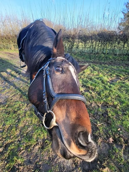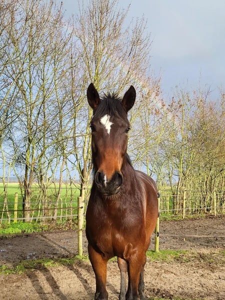 Na lang wikken en wegen heb ik toch besloten om een nieuw huis te zoeken voor mijn merrie. Adora (officiële naam Sharon) ✅️ Heeft haar entingen ✅️ 2024 gekeurd, overkeuren mag k.k. ✅️ Tandarts in Jan, recht gebit ✅️ Hoefsmid begin Feb Prijs inc een nieuw zadel Ik gun haar iemand die met plezier en toewijding met haar aan de slag gaat en haar de aandacht en begeleiding kan geven die ze nodig heeft. Haar galop zit heel lekker en we hebben ook een sprongetje gedaan. In de juiste handen kan ze mooi lopen. Vanwegen het missen van een klik zoeken we nu een ander huis. Adora is geen knuffelkont, behalve bij jeuk, dan komt ze naast je staan, ook als je wegloopt, omdat ze graag gekriebeld wil worden. Ze heeft een zekere, ervaren ruiter nodig die haar verder kan helpen en helaas ben ik dat niet. Dressuurmatig en voor cross biedt Adora potentie, en recreatief is ze fijn te rijden. Erg leergierig. Ze staat bij ons in een paddock 24/7 buiten maar heeft ervaring met een stal. Denk niet dat je haar daar gelukkig mee maakt, ze houdt van lekker rennen op de wei en neemt dan ook graag de oude pony's mee spelen. Soms is houden van ook loslaten. Ik merk dat ik te onzeker ben. Adora is introvert maar heeft een eigen wil. Ze heeft iemand nodig met meer ervaring in het trainen van paarden. Gaat enkel naar een liefdevol huis. Bij interesse gelieve berichten/whatsappen op 0642191553