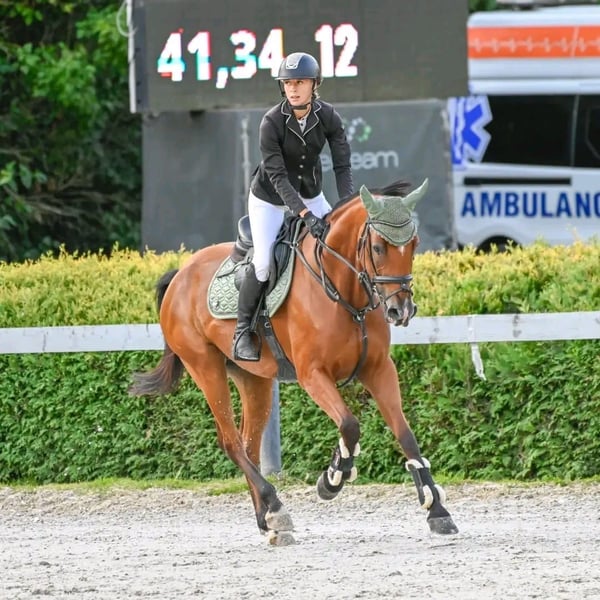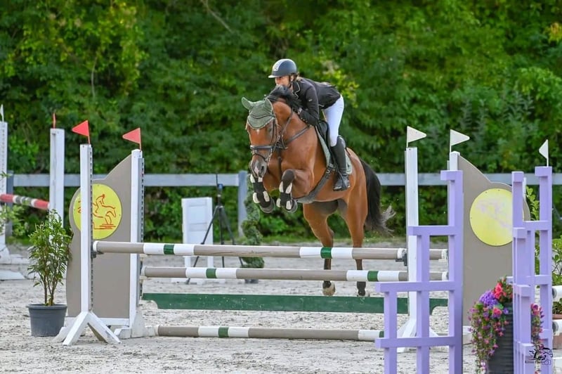 Zum Verkauf steht eine 2017 geborene, etwa 1.66 m große hellbraune ungarische Warmblutstute. Die junge Dame besitzt einen freundlichen Charakter und ist brav im Umgang. Unter dem Reiter läuft sie artig in allen drei GGA und lief bereits bis 1.10 m am Turnier, wobei sie im Training auch bereits höhere Sprünge ohne Probleme gemeistert hat. Aufgrund ihres ausgeprägten Temperaments und ihres guten Abdrucks am Sprung ist sie nicht für reine Anfänger geeignet, da sie sehr sensibel & aufmerksam im Parcours ist und es ihrem Reiter nur Recht machen möchte. Die Stute ist derzeit vorne beschlagen, kennt den Hufschmied, Tierarzt sowie das verladen und fahren.