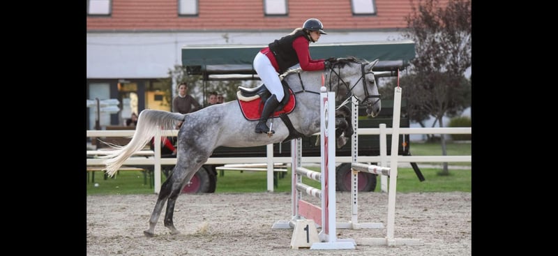 For sale: 8-year-old HSH sport mare Sire: Indroctro C Height: 169 cm Withers height: 110 cm Experienced competition mare. At her most recent show she finished 3rd place with a clear round (0 faults). She is completely healthy and up to date with all vaccinations. She has a very good, balanced canter, is easy and comfortable to ride, making her suitable for beginners as well as amateur riders. Honest, willing, and pleasant to work with both on the flat and over fences. Transport assistance available. Excellent value for money More video whatsapp +36703969537