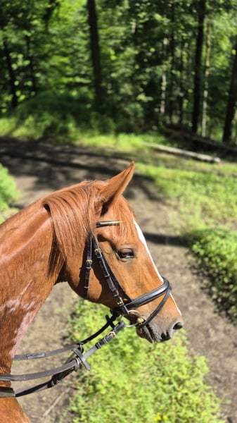 For sale is a very lively 10-year-old gelding known as Frechdachs. True to his name, he definitely keeps things interesting and you will never be bored with him. He came to me in February 2024, and I had to start from scratch with him. Essentially, he has only been properly ridden since May of this year. He is willing, eager to learn, and picks things up quickly — but he needs a confident, experienced rider. Unfortunately, Frechdachs is quite skittish and easily spooked. However, traffic such as cars, trucks, tractors, and street noise are no problem for him. He is more concerned with unfamiliar objects or sounds he cannot recognize. Being in the company of a second horse, whether on a ride, in the arena, or even grazing nearby, makes him feel much more secure. In handling, he is incredibly well-behaved and very cautious with me. He gets along well with other horses and adapts easily. I work with him almost daily — riding, ground work, and free dressage. It is with a heavy heart ❤️ that I offer him for sale, but due to time constraints I have to part with him.