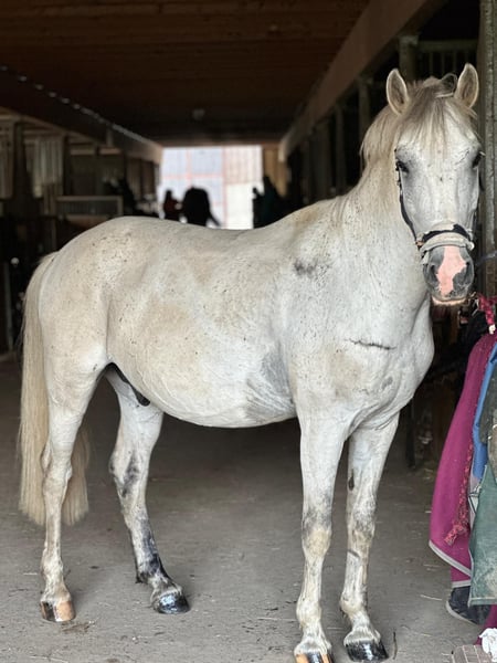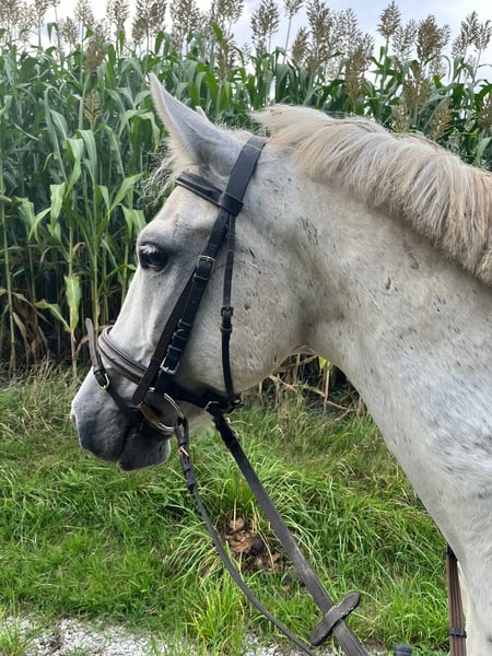 Sensibler Schimmel-Wallach (Pony) ca. 1,40 m – sucht seinen Menschen Zum Verkauf steht ein sensibler Schimmel-Wallach, ca. 1,40 m groß, der im April 11 Jahre alt wird. Er ist seit vier Jahren in unserem Besitz. In seiner Vergangenheit hatte er einen Weideunfall, von dem er ein paar Narben behalten hat. Diese sind vollständig verheilt und haben keine gesundheitlichen Einschränkungen hinterlassen. Ursprünglich sollte er ein Kinderpony werden, dafür ist er jedoch nicht geeignet, da er ein Pferd ist, das höchstens ein bis zwei feste Bezugspersonen braucht. Er ist sensibel, aufmerksam und testet seinen Reiter gerne, kennt aber auch klar seine Grenzen. Unter dem Sattel ist er sehr schön zu reiten, springt gerne und geht entspannt und brav ins Gelände. Mit Ruhe, Konsequenz und Verständnis lässt er sich gut arbeiten. Man sollte jedoch bereit sein, mit seinen kleinen Macken umzugehen. Hat man einmal sein Herz erobert, gewinnt man einen treuen, ehrlichen Freund, der seinem Menschen sehr zugetan ist. Nur in erfahrene, liebevolle Hände abzugeben Kein Anfänger- oder Kinderpony Mit Zubehör zu verkaufen: • Sattel • Trense • Decken Bei ernsthaftem Interesse und weiteren Fragen gerne melden. Videos können geschickt werden. Ein Platz, an dem er verstanden und geschätzt wird, ist uns sehr wichtig. Um Reittourismus zu vermeiden verlangen wir 30€ für das Probereiten.