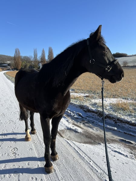 Zum Verkauf steht ein 18-jähriger Wallach, ungarisches Noniusz-Halbblut, der ein neues, passendes Zuhause bei erfahrenen Pferdemenschen sucht. Er ist ein vielseitiger Partner: als ehemaliges Wanderreitpferd liegen ihm vor allem ausgedehnte und flotte Geländeritte. Aber auch bei der gymnastizierende Arbeit an der Hand oder unterm Reiter, beim Horsemanship oder Zirkuslektionen ist er motiviert dabei. Zuletzt wurde er akademisch gearbeitet. Er bringt ein gutes Körpergefühl sowie Lernbereitschaft mit. Im Gelände hat er viel Go und Freude an der Bewegung, bleibt dabei jedoch ansprechbar. Gleichzeitig ist er sehr charakterstark und braucht einen einfühlsamen, erfahrenen Menschen, der fair mit ihm arbeitet. Er ist kein Anfängerpferd und wird ausschließlich in erfahrene Hände abgegeben. schmiedefromm, verladefromm, stets kooperativ beim Tierarzt, regelmäßig entwurmt, geimpft und Zahnkontrolle Er wird nur in Offenstall- oder Weidehaltung mit Gruppenanschluss abgegeben, aktuell steht er in einer reinen Wallach-Herde. Bei ernsthaftem Interesse und passenden Haltungsbedingungen freuen wir uns über eine Nachricht mit kurzer Vorstellung des zukünftigen Halters und Platzes.