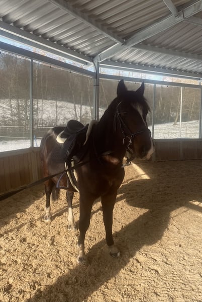 PREIS AUF ANFRAGE! Doxa wird aktuell gearbeitet und befindet sich im Beritt. Verkaufe ungarisches Sportpony – Wallach, Geburtsjahr 2021 Zum Verkauf steht ein eleganter ungarischer Sportwallach, der im Jahr 2021 geboren wurde. Das dunklebraune Pferd besticht durch seine elegante Erscheinung und sein vielversprechendes Springtalent. Mit einem Stockmaß von 145 cm ist er perfekt für ambitionierte Reiter, die ein zuverlässiges und talentiertes Springpony suchen. Er ist freundlich im Umgang, gesund und fit, bereit für den nächsten Schritt in seiner sportlichen Karriere. Bei Interesse oder für weitere Informationen stehe ich gerne zur Verfügung. Besichtigung nach Vereinbarung möglich