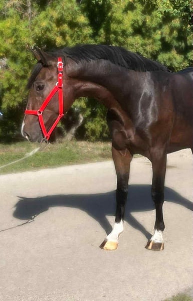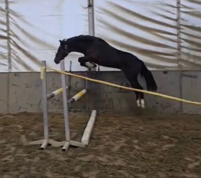 Hungarian Sport Horse for Sale – Gelding, born in 2021 We are offering an elegant Hungarian sport horse gelding, born in 2021. This dark bay horse impresses with its refined appearance and promising jumping talent. Standing at 14.1 hh, he is ideal for ambitious riders seeking a reliable and talented show jumper. He is friendly in manner, healthy, and fit, ready to take the next step in his sporting career. Please feel free to contact me for more information or if you are interested. Viewings are available by appointment.