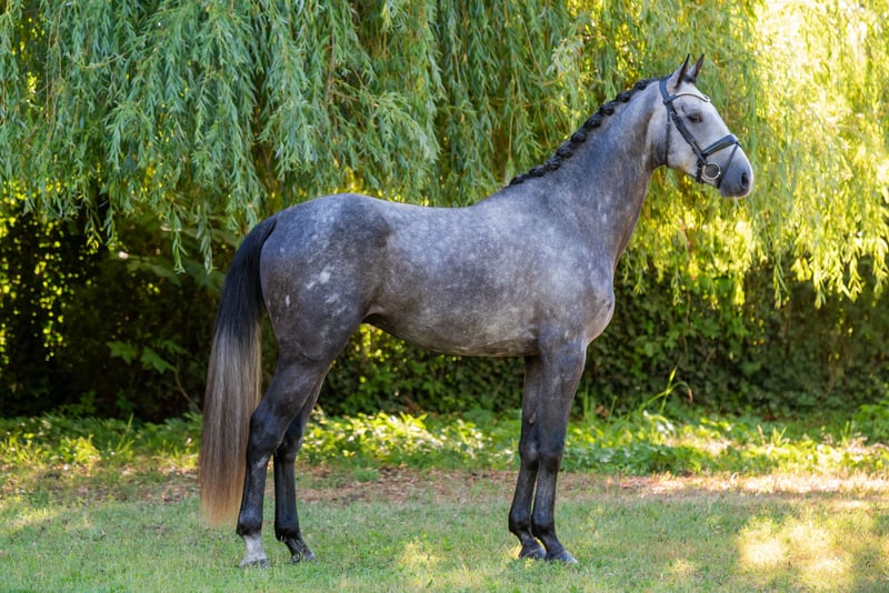 **FOR SALE: Parkertech Brownie Boy B – Gentle Grey HSH Gelding Training Level: Foundation (solid basics under saddle) Ideal for: Riders who want a horse with a kind temperament, easy to handle, and safe in any environment Key Traits: Friendly, intelligent, trainable, comfortable even in unfamiliar surroundings We introduce Parkertech Brownie Boy B, born on 23 April 2022, an elegant grey gelding by Cancara out of Gratcia-Reina VZ. Standing at 174 cm, this young horse offers both presence and promise in dressage discipline. Brownie Boy is sweet-natured and approachable. He has already established three good basic gaits—walk, trot, canter—that are comfortable and consistent for the rider. Intelligent and eager to learn, he responds well to training and shows a calm, confident demeanor even in new settings. If you are looking for a horse that combines gentleness, adaptability, and a solid foundation, Parkertech Brownie Boy B is a rare find. Contact us for more information or to arrange a private viewing. https://www.czbreedingstall.com