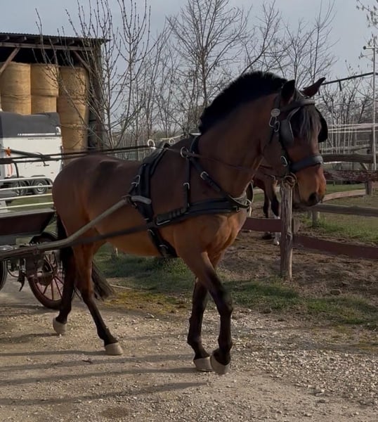 For more information, please contact me on WHATSAPP (0036306800863) or in email (hajagosn92@gmail.com) -152cm -cooperative and reliable horse -easy to handle -reliable in traffic and also on the fields -goes well single and in pair too