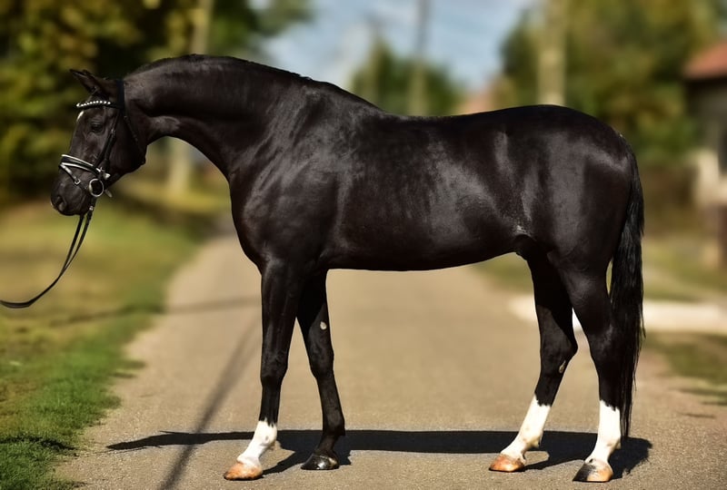 2020 born, 168 cm tall, elegant black Hungarian gelding with a top character This exceptionally elegant Hungarian sport gelding (5 years old, 168 cm) impresses with his noble appearance and powerful, expansive movements. His expressive build and jet-black coat make him a true eye-catcher. He has a balanced, friendly temperament, is well-behaved in handling, and is ideal for ambitious amateurs as well as beginners. He is fully backed and is familiar with both arena work and trail riding. The gelding is completely healthy and has a current veterinary health certificate. Worldwide transport can be arranged with reliable, professional partners. Contact: +36 30 756 7214 (available via WhatsApp)