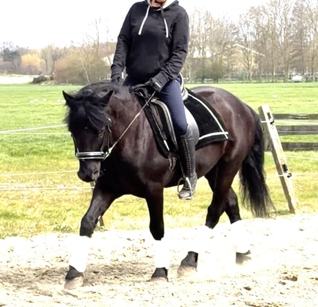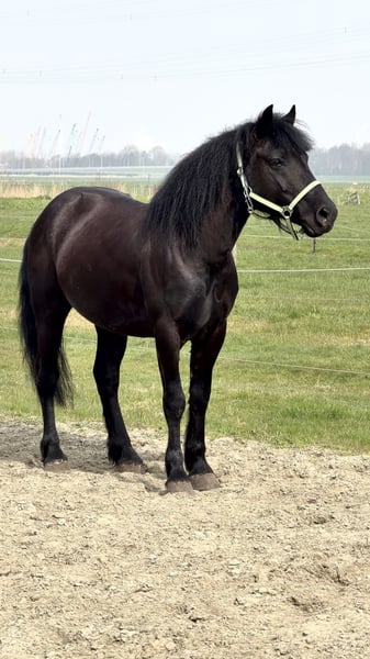 🖤 Wunderschöner schwarzer Traumpony für echte Pferdeliebhaber 🖤 (Bitte die Anzeige sorgfältig lesen) Dieser hübsche junge Wallach, der an einen Mini-Friesen oder einen Islandpferd erinnert, sucht sein Für-Immer-Zuhause 🏡 Details: • D-Pony (ca. 143 cm) • 6 Jahre alt • Wallach • Geboren am 15.04.2019 Er ist ein ideales Pony auch für kleinere Erwachsene. Er ist nicht heiß, aber auch kein schlaffer Pony – genau die richtige Balance. Er wurde draußen leicht eingeritten (also muss noch alles im Reitplatz gelernt werden). Wer Freude daran hat, ihn noch ganz nach eigenen Vorstellungen auszubilden, sollte sich schnell melden! Charakter & Umgang: ✔️ Lieb und zuverlässig ✔️ Sozial und ruhig ✔️ Angenehm im Umgang ✔️ Geduldig und gelassen ✔️ Mag Aufmerksamkeit und Kuscheln Er steht beim Putzen ruhig, geht brav an der Hand mit und gibt seine Beine artig. Ein ehrliches Pony. Reiten & Einsatzmöglichkeiten: Er verfügt über drei schöne Gänge und ist ein toller Allrounder. Geeignet für z.B.: • Dressur • Vielseitigkeit (Eventing) • Ausritte (Wald/Strand) Aufgrund seiner Erscheinung und Bewegung ist er ein echter Blickfang 😍 Nach einer langen Reise konnte er bei uns ruhig ankommen. In Kürze beginnen wir mit dem Longieren und werden ihn weiter kennenlernen. Diese Woche gilt noch ein attraktiver Preis, das ist ein Abholpreis (nicht für das Reiten etc., da wir noch nicht soweit sind). Wenn wir mit dem Reiten und weiterer Ausbildung fortsetzen, wird der Preis steigen. Sie haben Lust, selbst mit ihm zu arbeiten und ihn weiter zu entdecken? Gerne können Sie ihn bei uns besichtigen! Zusätzliche Infos: • Bekannt mit Sattel (Videos vorhanden) • 24.03.: Entwurmt (Equest Pramox) • 26.03.: beim Hufschmied gewesen