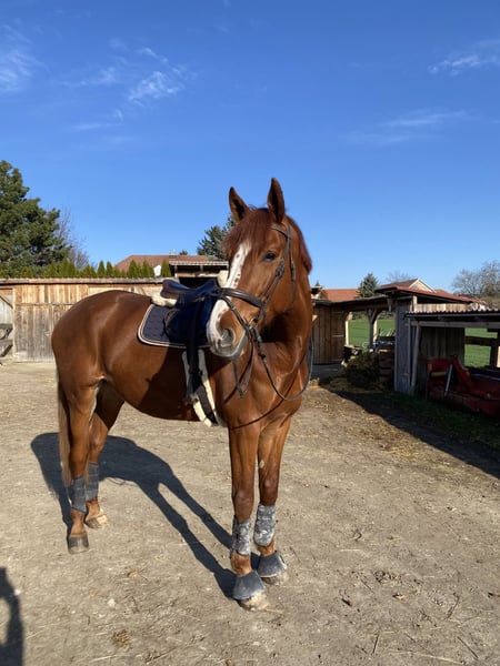Ich verkaufe schweren Herzens meinen 8 jährigen, ca 1.82m großen Gidran Wallach Sero. Seit über 3 Jahren in meinem Besitz, kennt er alles, was ein perfekter Freizeitpartner kennen muss. Er ist leicht Dressurmäßig zu reiten, springt Wechsel, kennt alle Seitengänge, einfache Wechsel,… Bis 95 cm am Turnier platziert, und am Turnier immer super brav gewesen. War meist alleine mit ihm unterwegs, geht alleine auf den Hänger, bleibt brav alleine und super unkompliziert im gesamten. Beim ausreiten ein Traum, mutig und unerschrocken, geht alleine und in der Gruppe sehr brav ins Gelände. Bin ihn mehrfach Vielseitigkeis Training geritten, geht ins Wasser, und liebt das Gelände. Lässt sich ohne Sattel reiten, mit Halsring, kann einige Tricks und wäre sicher auch ein Ideales Familienpferd, er ist für jeden Blödsinn zu haben! Lässt sich auch mal von einem schwachen Reiter reiten, ist immer lieb und auf seinen Menschen bedacht. Steht bei mir Tagsüber in der Herde, Nachts in der Paddockbox, er ist sehr verträglich. Ich gebe ihn nur her, da er zwar ein Klasse Allrounder ist, aber kein Pferd für den höheren Springsport! Videos gern unter 06603676573, Vor-/Probereiten gern möglich (20€)