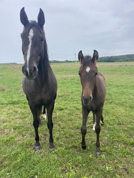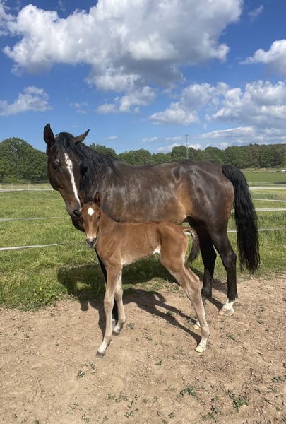 We are offering our stylish Zangersheide broodmare, born in 2014, approximately 1.68 m tall, named "Aerobic Z," for sale. Aerobic is characterized by her excellent temperament, correct conformation, and mental clarity. She is very easy to handle and consistently produces typy, modern, and healthy foals. We purchased her directly from the breeder in 2022 and have bred two outstanding filly foals with her ourselves. She is not in foal for next year. Due to her successful progeny, we are reluctantly offering her for sale again. She has only been used for breeding so far, as she had a scar on her right eye as a foal, which prevented her from being backed. Otherwise, she has never been ill or injured. She has always accepted foals easily and uncomplicatedly, making her especially suitable for "first-time breeders." Upon request, we are happy to send free jumping videos of her offspring.